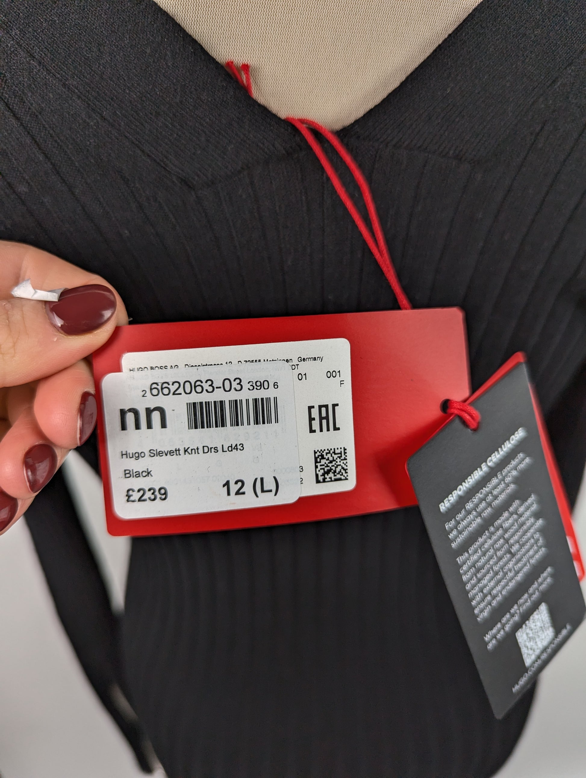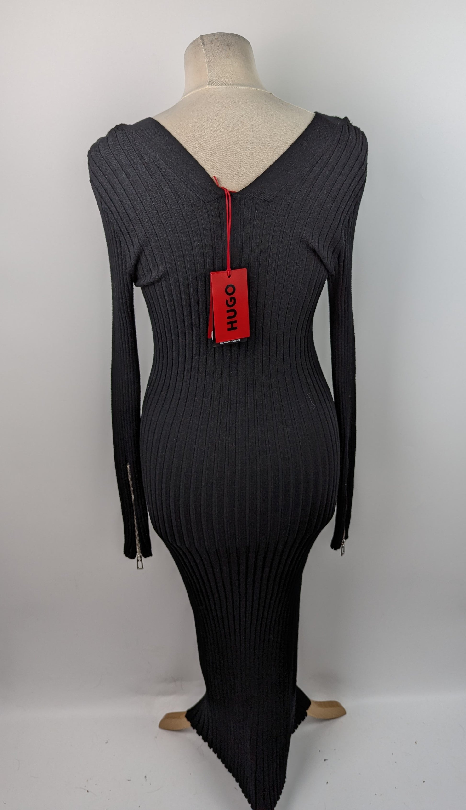 The Hugo Slevett Knit Dress redefines the classic little black dress with modern sophistication. Perfect for any occasion, from office chic to evening elegance, this body-hugging silhouette flatters your figure while offering effortless versatility.