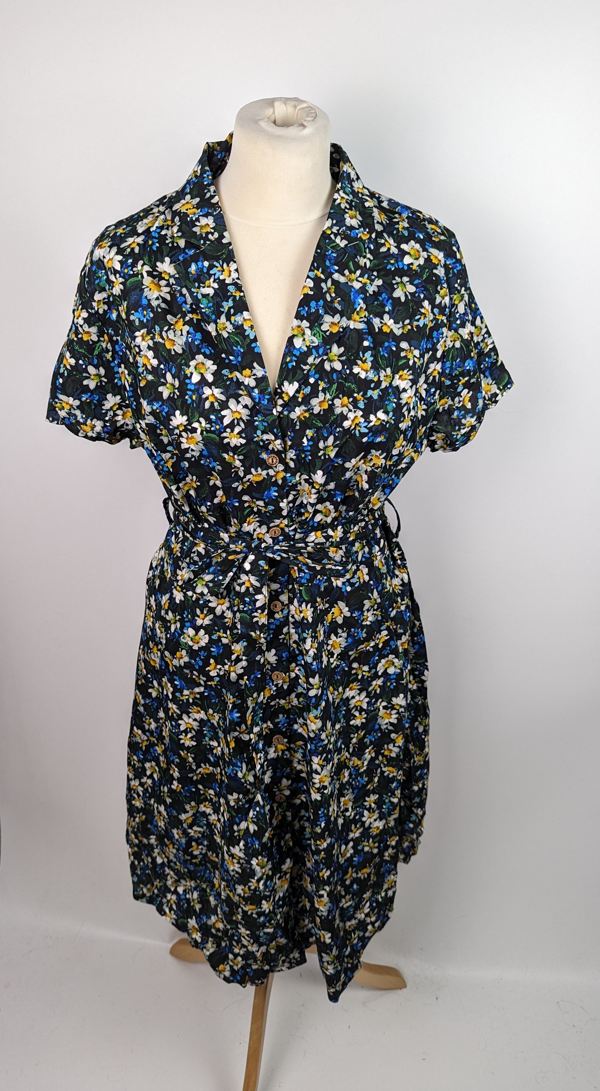 This dress has everything you need to brighten up your wardrobe. It's the floral print, full skirt and collar that gives it such a vintage feel, while the vibrant colour adds a remarkable modern twist. Comes with a removable belt. Paired with tights and brogues, this tea dress just the thing to help you feel fun and feminine in your unique style.