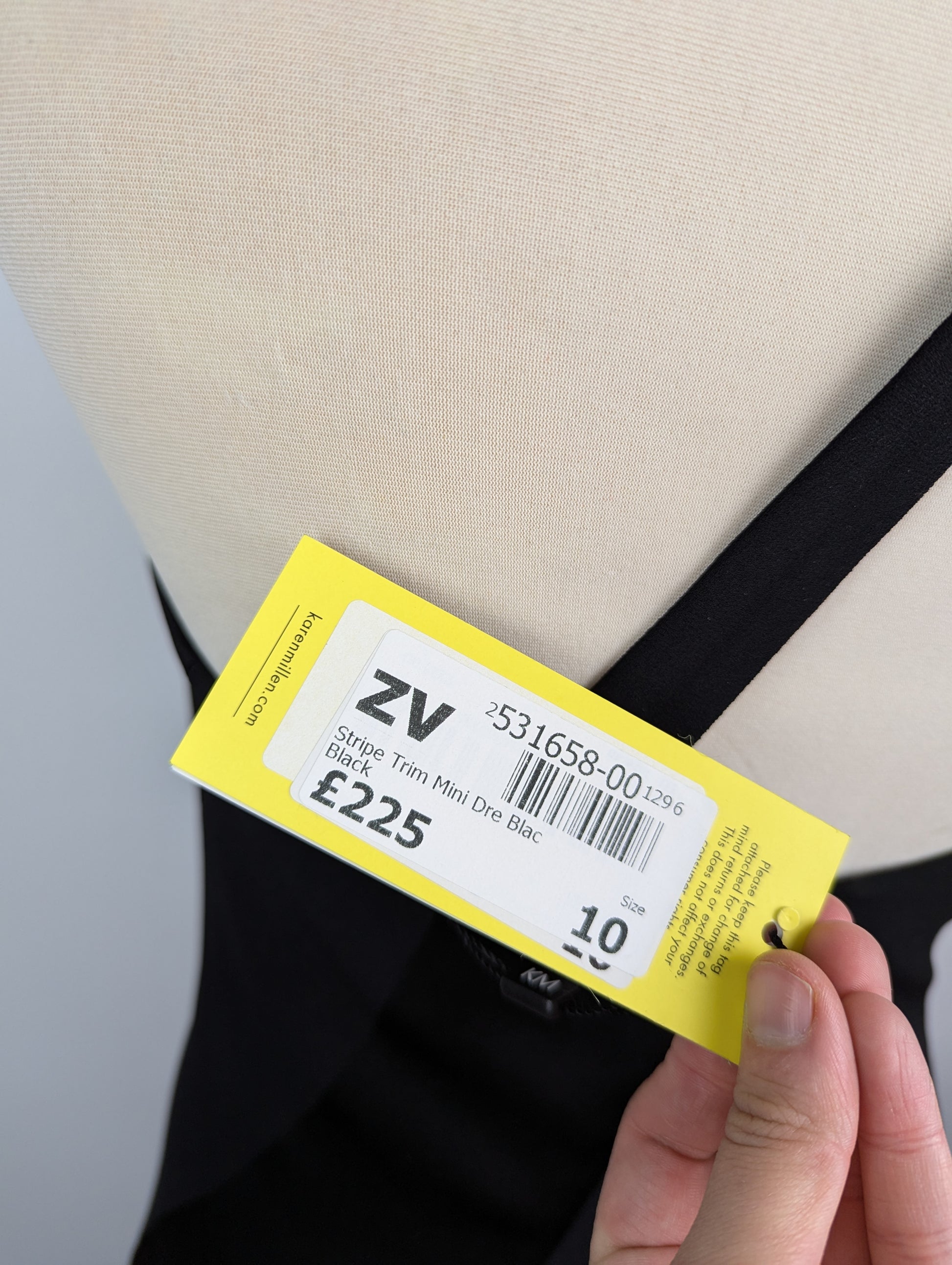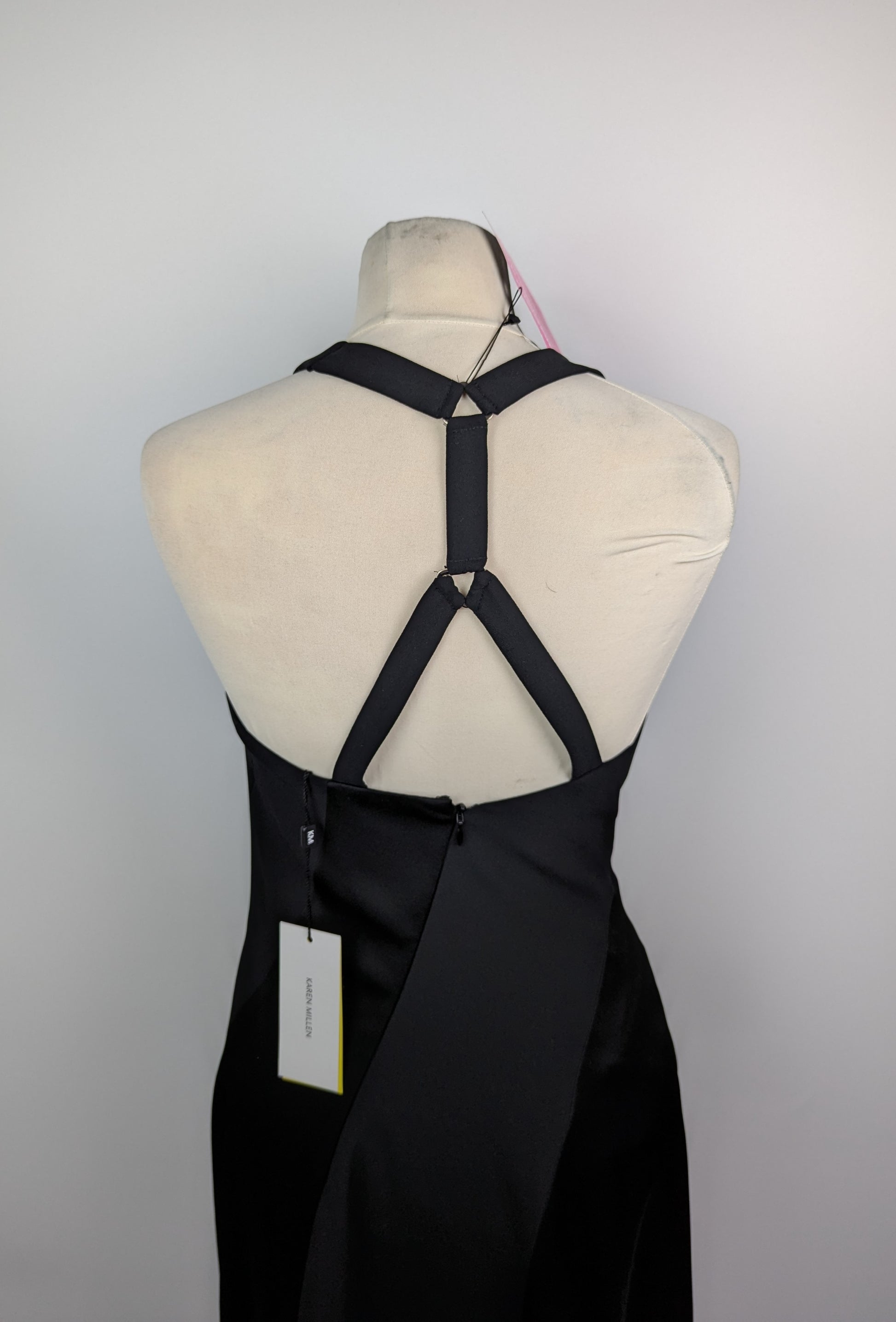 This Karen Millen Stripe Panelled Dress in black features a full back zip with stunning strap detailing. It is the ideal choice for a formal occasion.