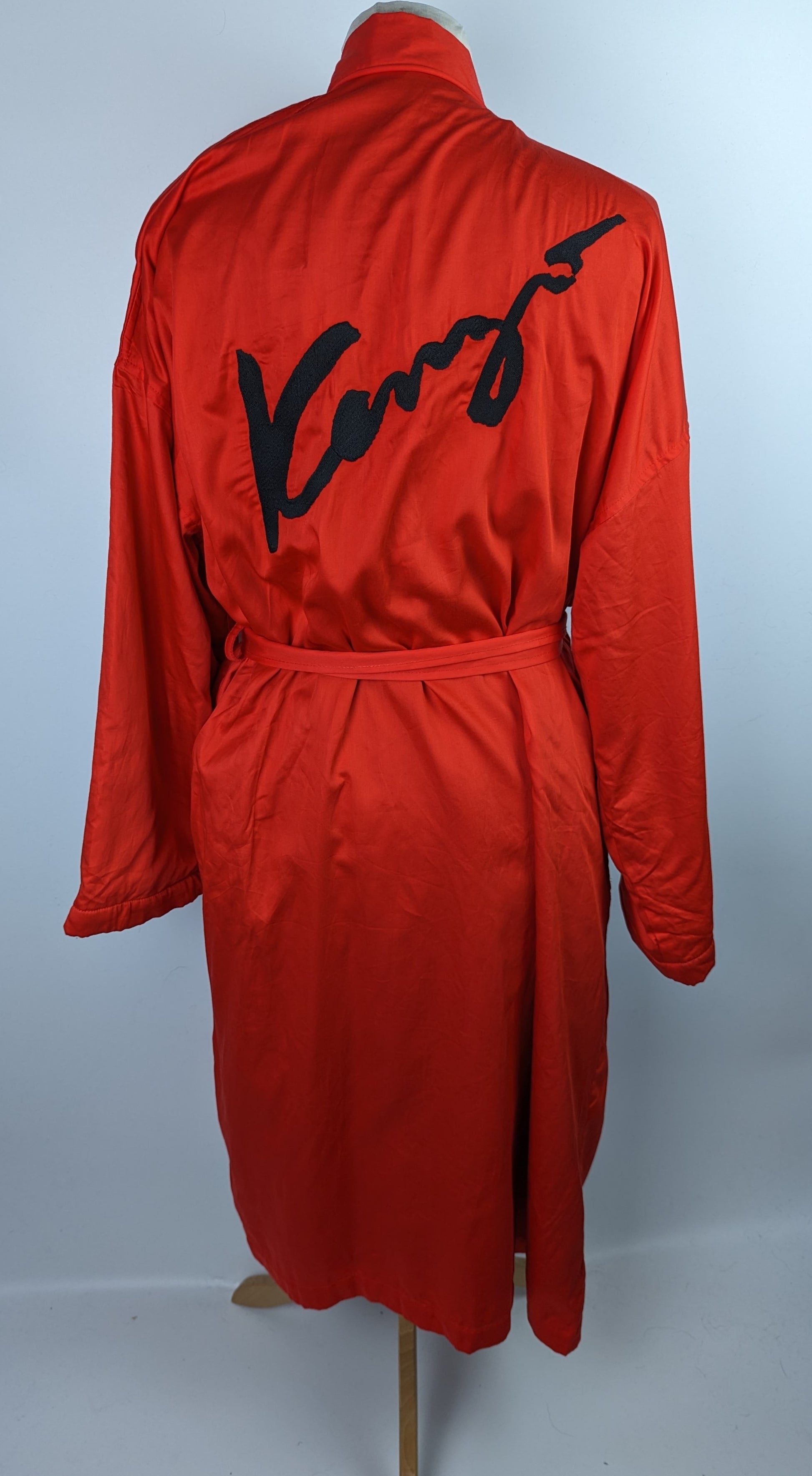 Lend a touch of luxury to your essentials with this dressing gown from Kenzo. Made from cotton for a comfortable fit, this dressing gown is an impressive option to slip on. Embossed with a bold black logo print at the back, it comes with a self-tie for a perfect fit. Team this robe with matching slippers for a warm and cosy feel as the temperature drops.
