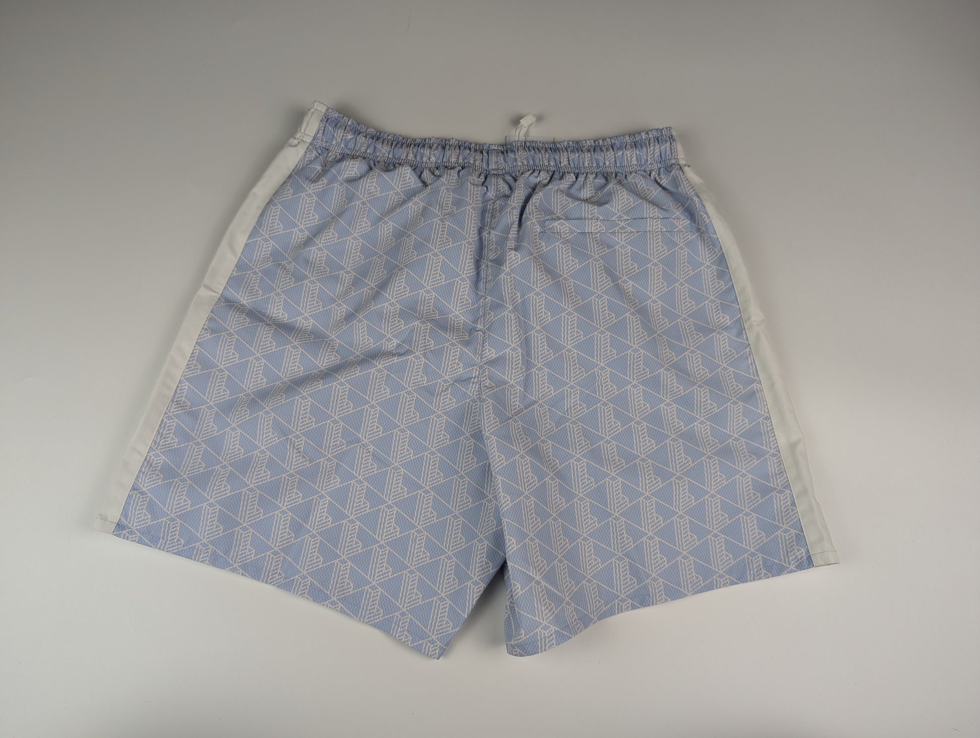 Lacoste Monogram Mens Print Swim Trunks - Light Blue / White