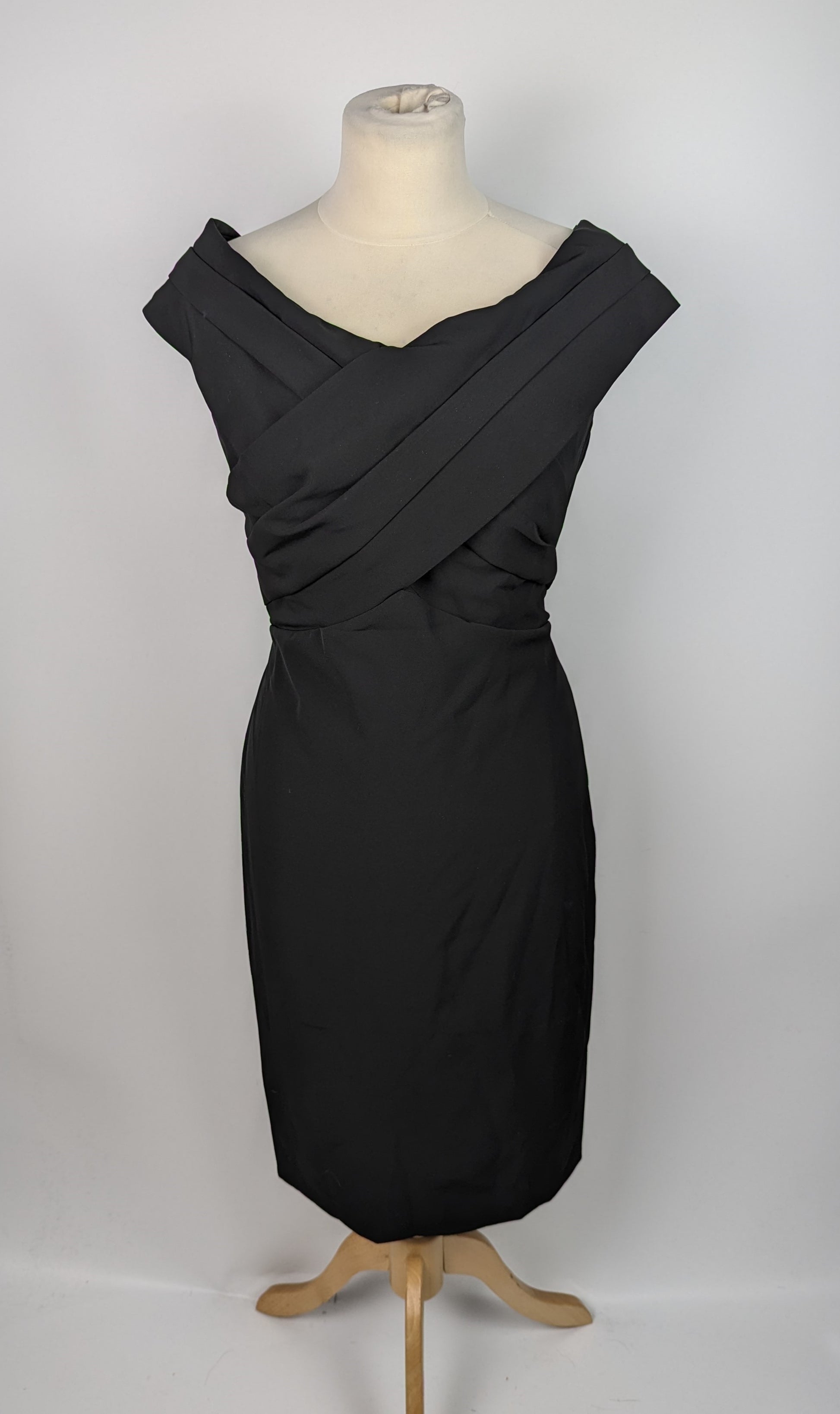 Adding an opulent touch to your occasion wear, this figure-hugging silhouette has been crafted from soft polyester fabrication while the overlapping bodice enhances your figure. Cut in an off-the-shoulder style for a flattering look, this knee length design is secured with a concealed centre back fastening accompanied with a hook-and-eye fastening. Pair yours with strappy heels and a small clutch for evening cocktails with the girls.