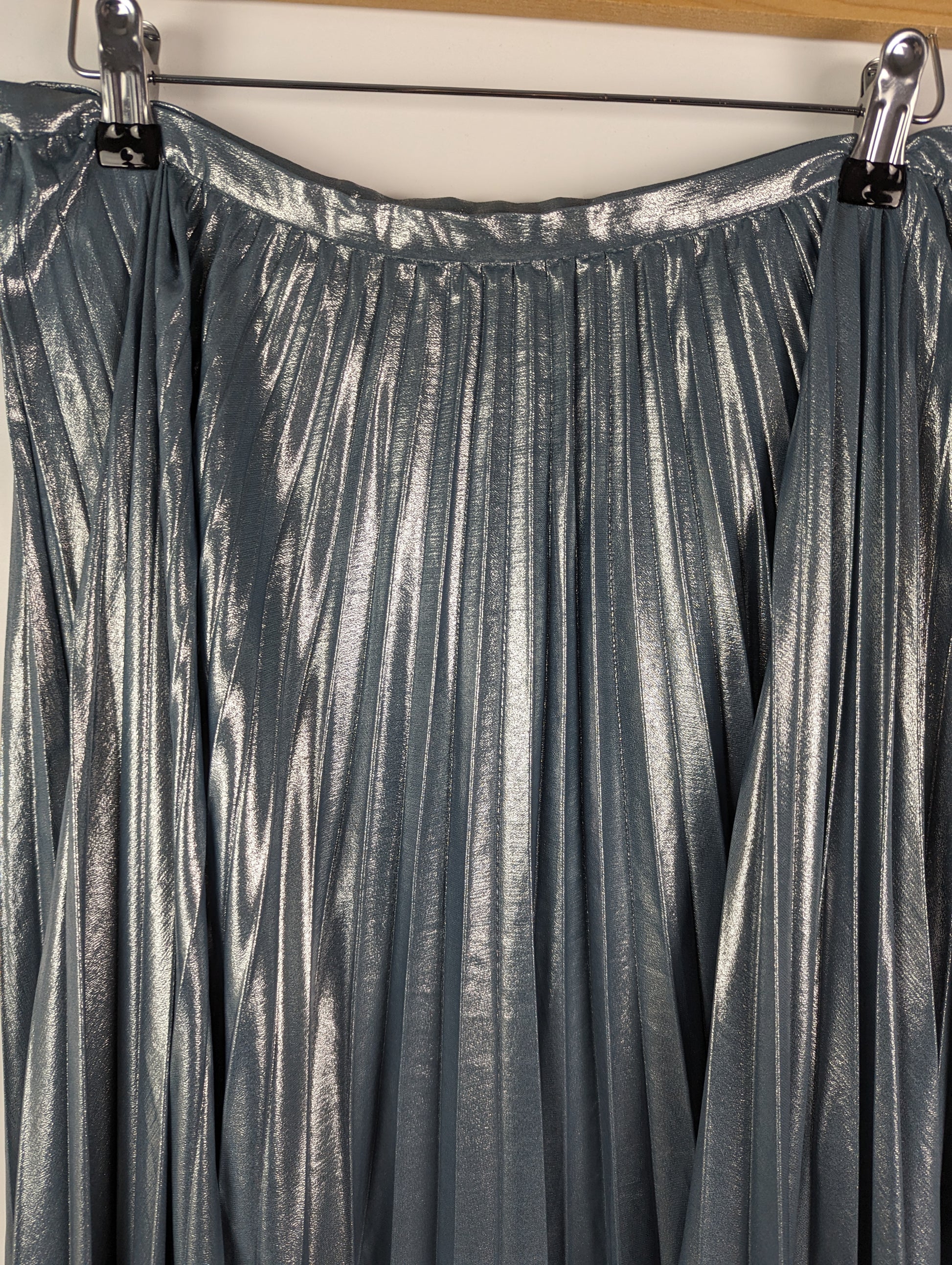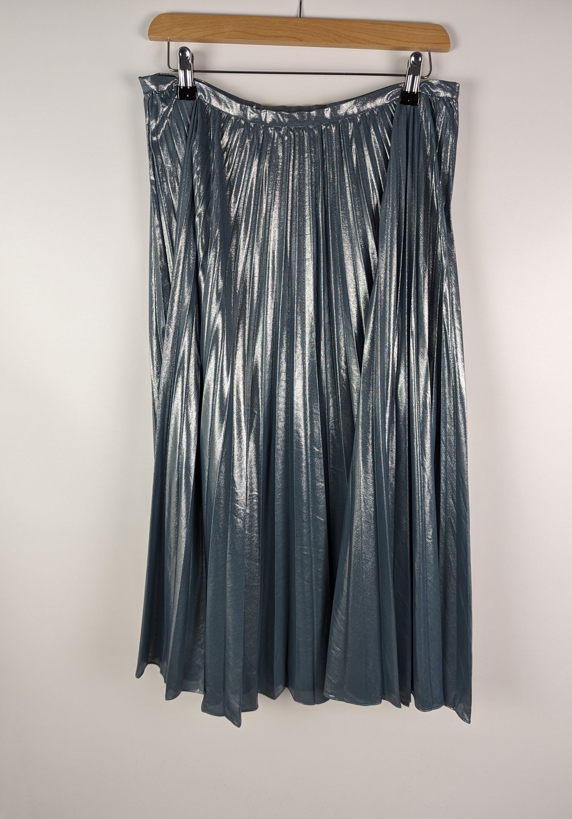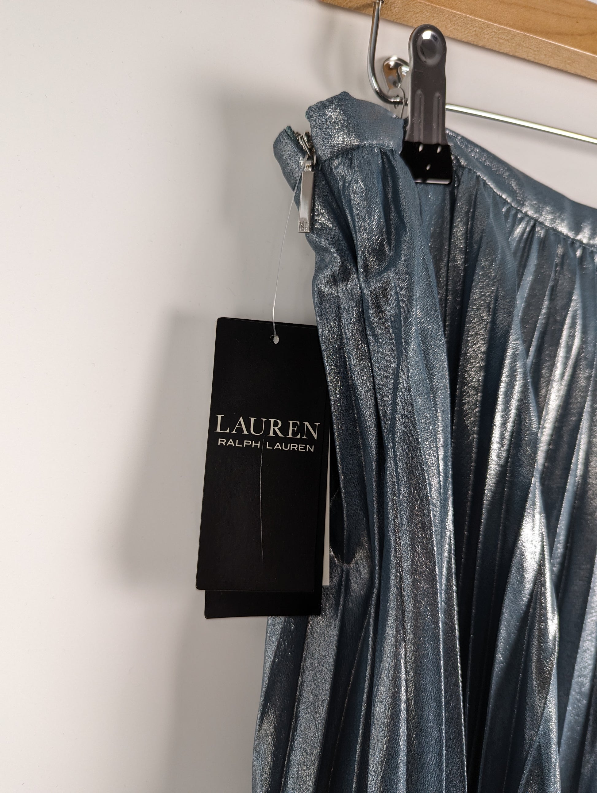 Effervescent sunburst pleats and light-catching metallic chiffon combine to form this statement-making midi skirt from Lauren Ralph Lauren. This a-line silhouette has a concealed left side seam zipper with a hook and eye closure.