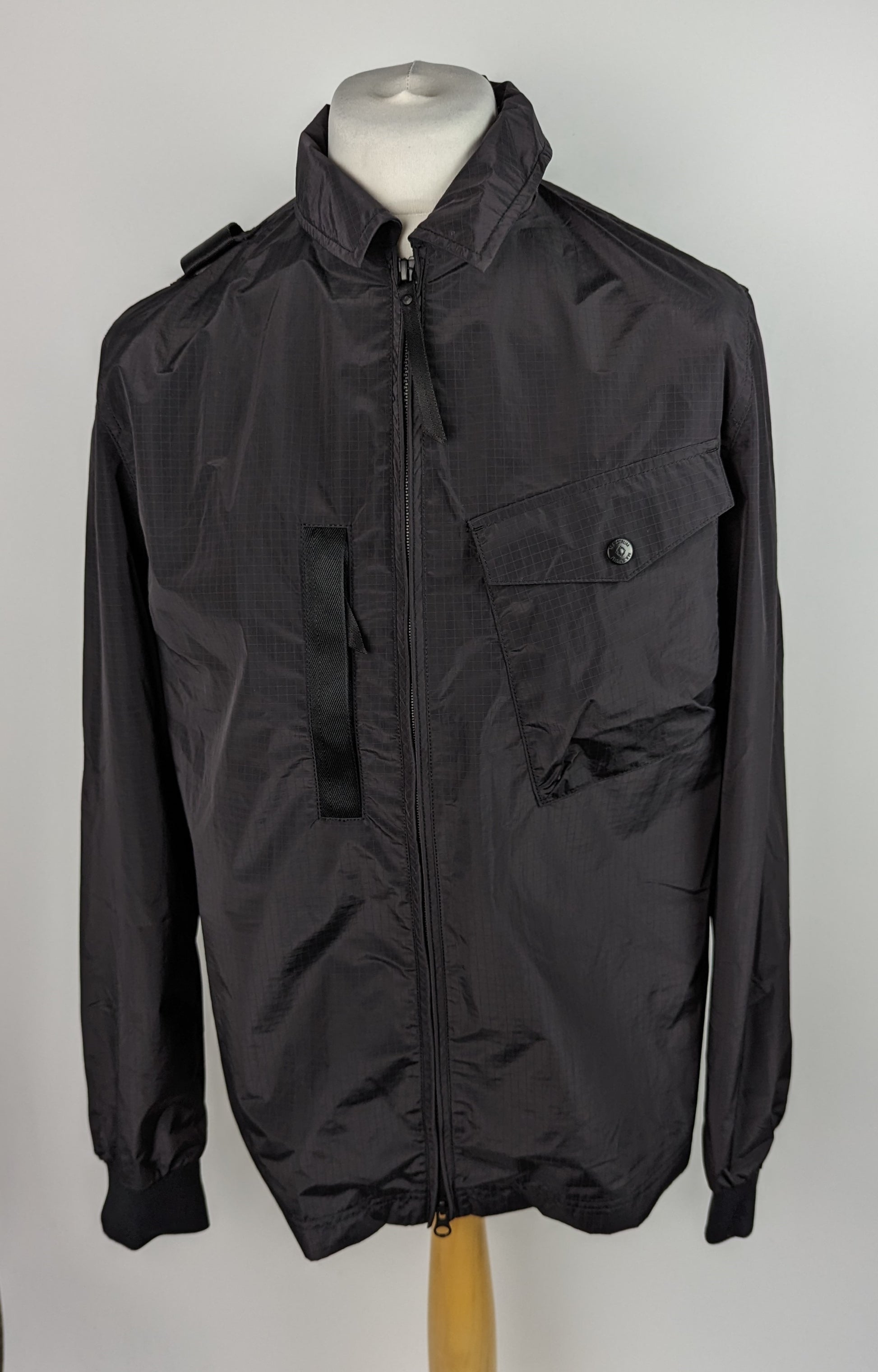 MA STRUM Mens Nylon Grid Overshirt - Jet Black