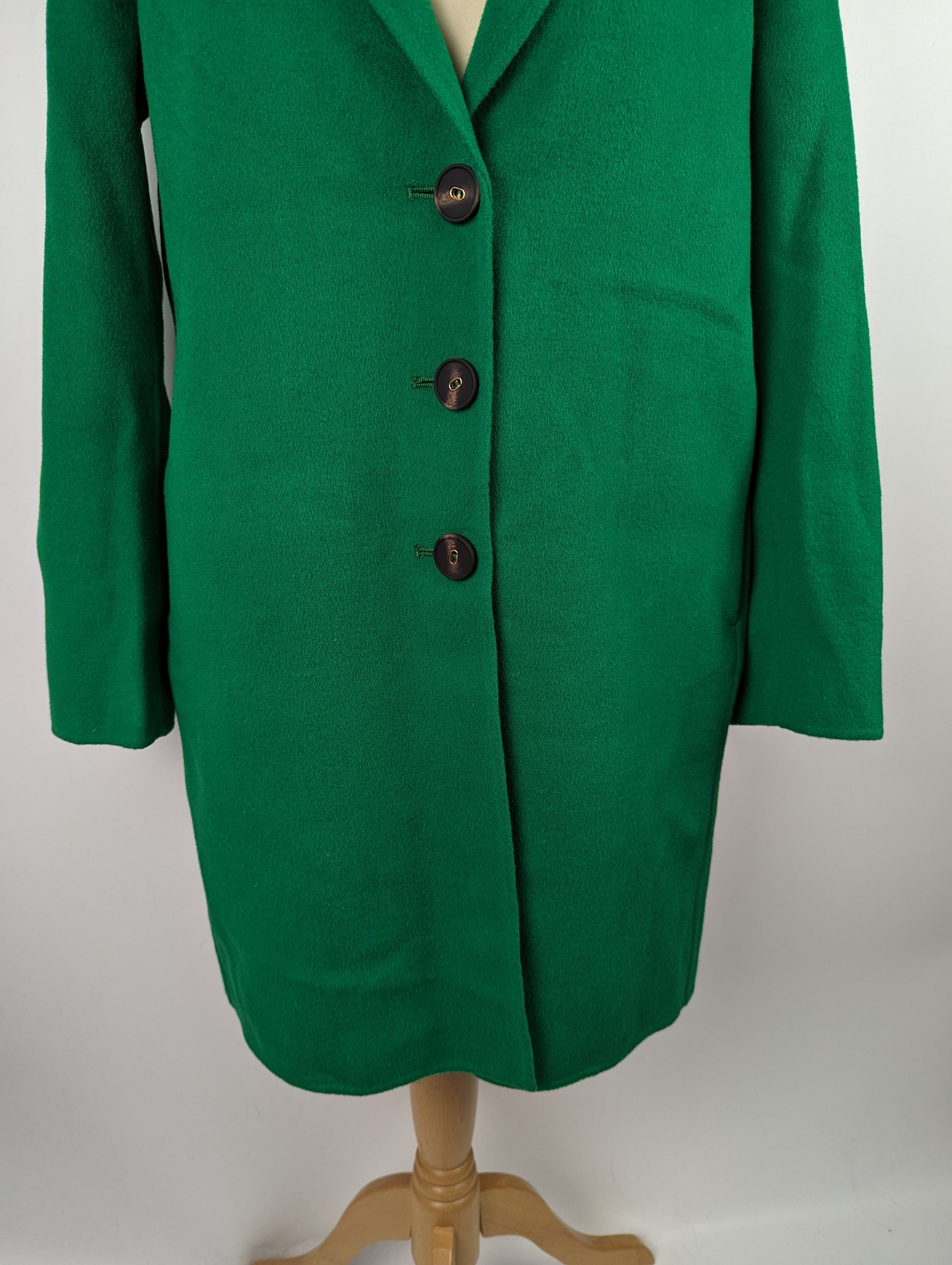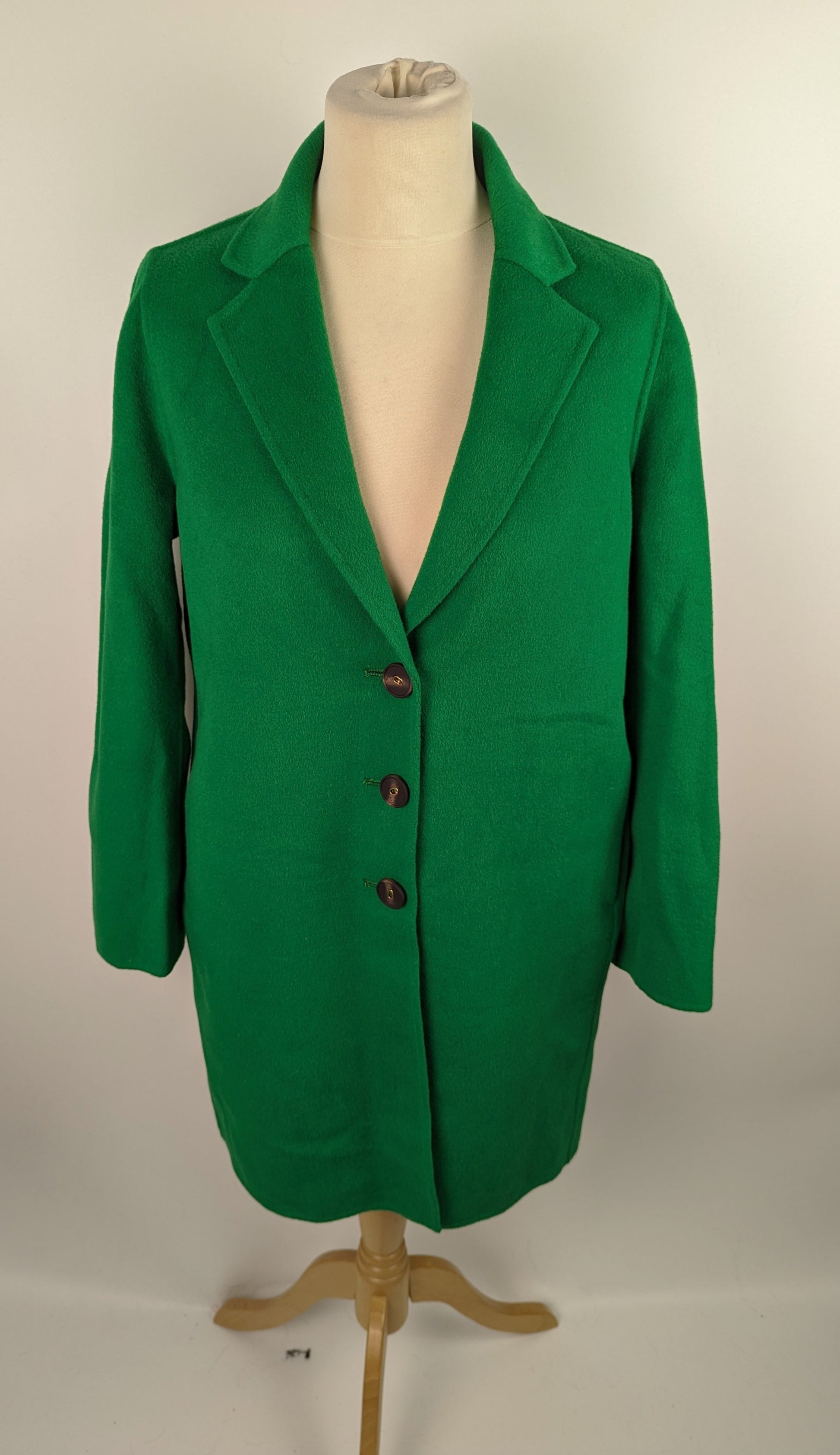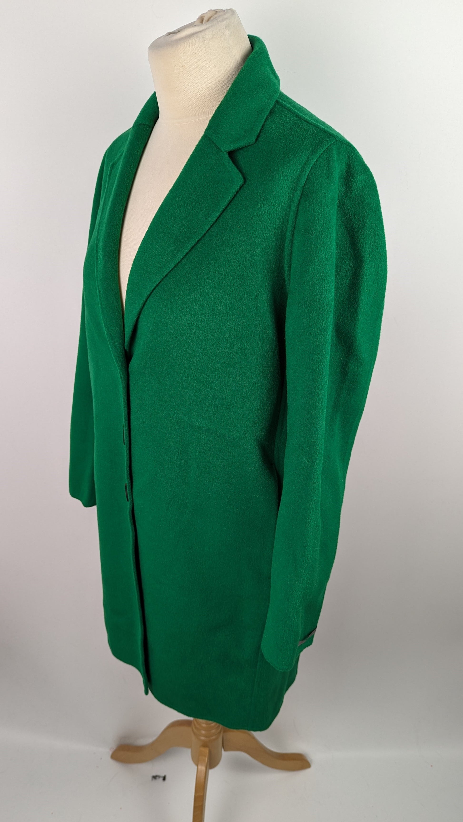 Beautiful ladies coat by MARELLA. The Miriam is a longer length, single breasted design, perfect for everyday or more formal occasion wear. The coat is crafted from wool enriched blend for a luxury look and feel, and the bold green colouring makes for the perfect statement piece. Three contrast button fasteners add shape to the fit, and the coat is finished with concealed pockets at the waist for those small necessities.