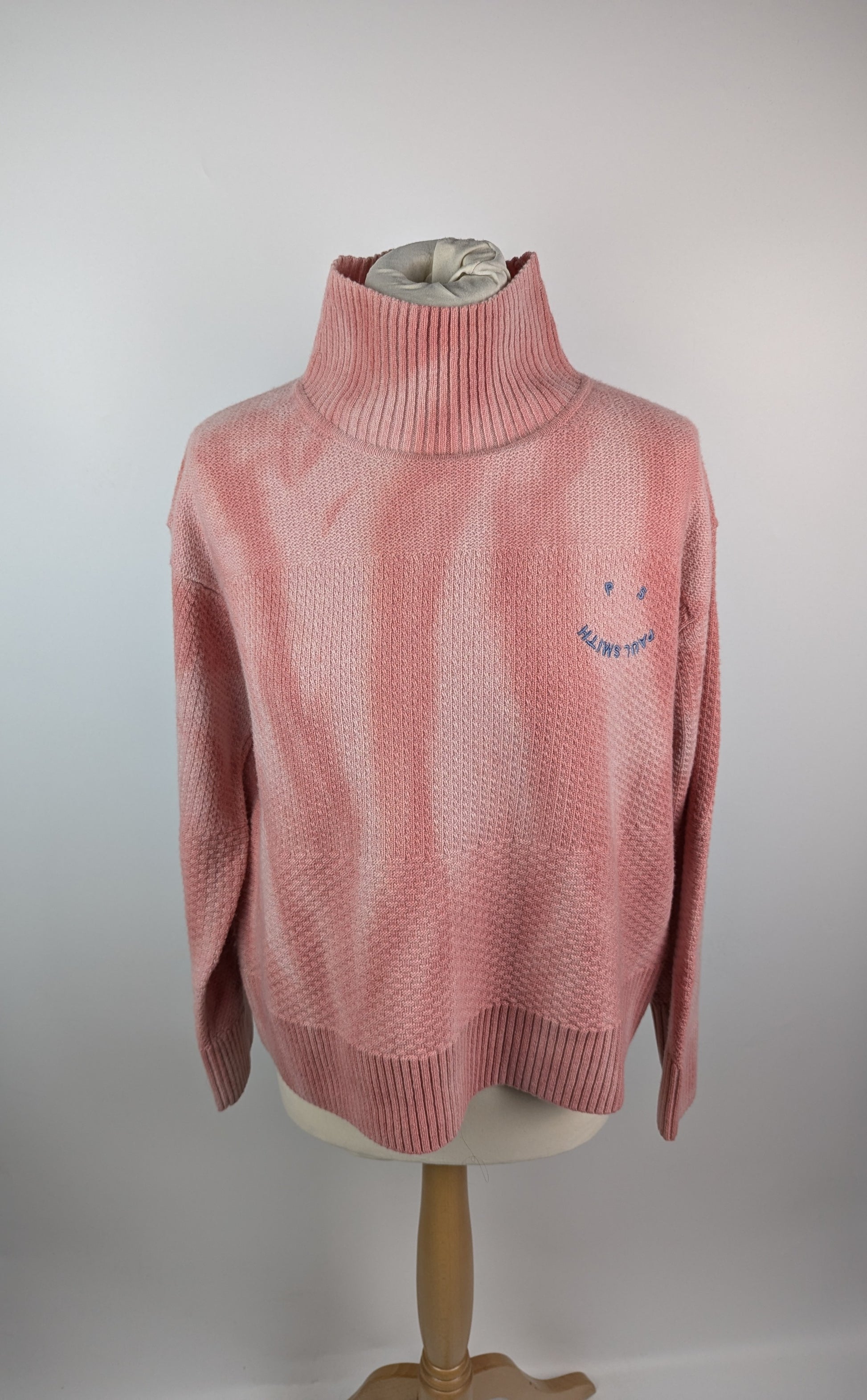 Crafted from quality knit fabric, this Paul Smith jumper features a distinctive high neckline paired with the iconic brand logo positioned at the chest. The ribbed detailing at the neckline, cuffs, and hem provides a refined finish and ensures a secure fit. The piece showcases a sophisticated two-tone pink palette, offering versatile styling options for the modern wardrobe.