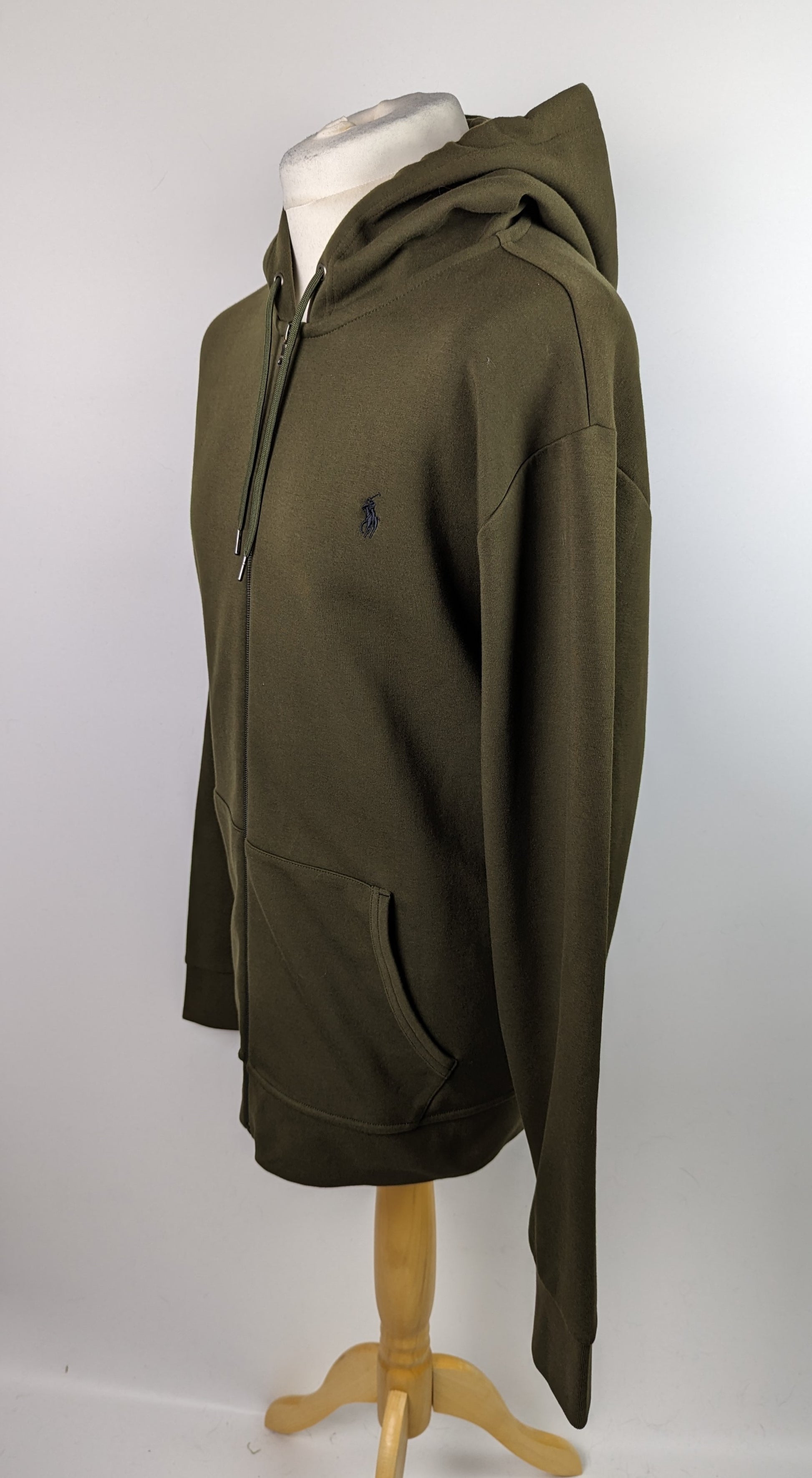 Invest in a timeless classic addition to your layer edit with this Polo Ralph Lauren Double-Knit Full-Zip Hoodie. Crafted from a premium poly-cotton blend, this hoodie is cut in a regular fit and features a drawstring adjusted hood with full frontal zip closure, long sleeves, a split kangaroo pocket, straight hemline and rib-knit cuffs for maximum all-day comfort. Decorated in a solid colour block, the look is then finished with the brand's signature Pony emblem embroidered to the left chest for instant brand recognition. Material Composition: 70% Cotton, 30% Polyester. Collar: 98% Cotton, 2% Elastane. Machine washable at 30 degrees.