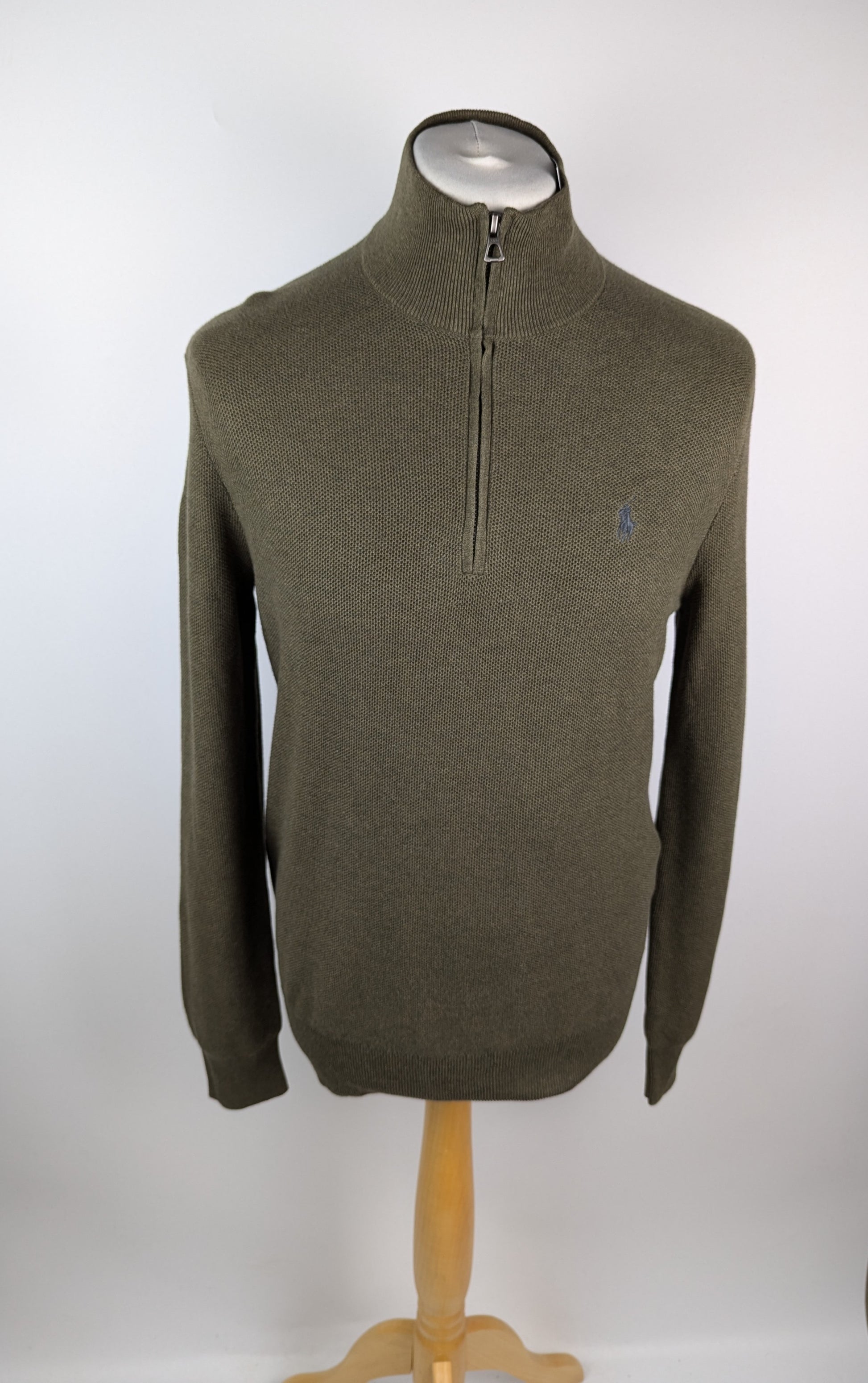 Polo Ralph Lauren Mesh-Knit Cotton Quarter-Zip Jumper - Cargo Olive