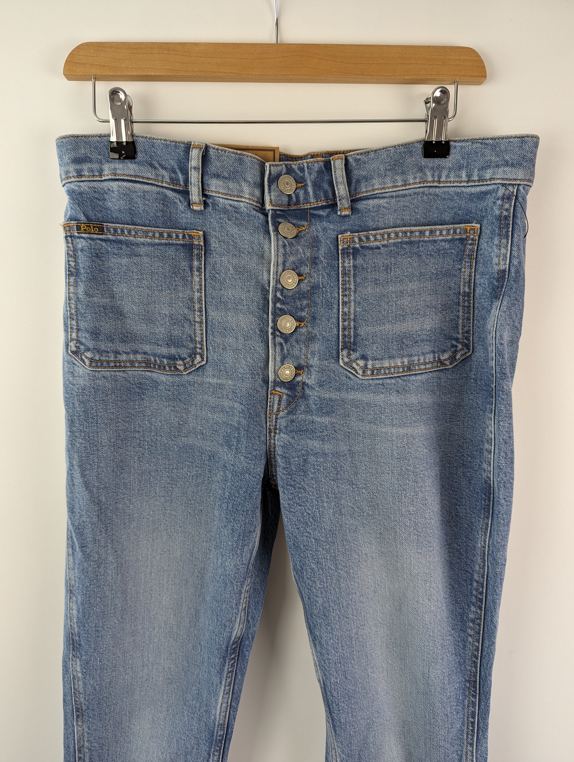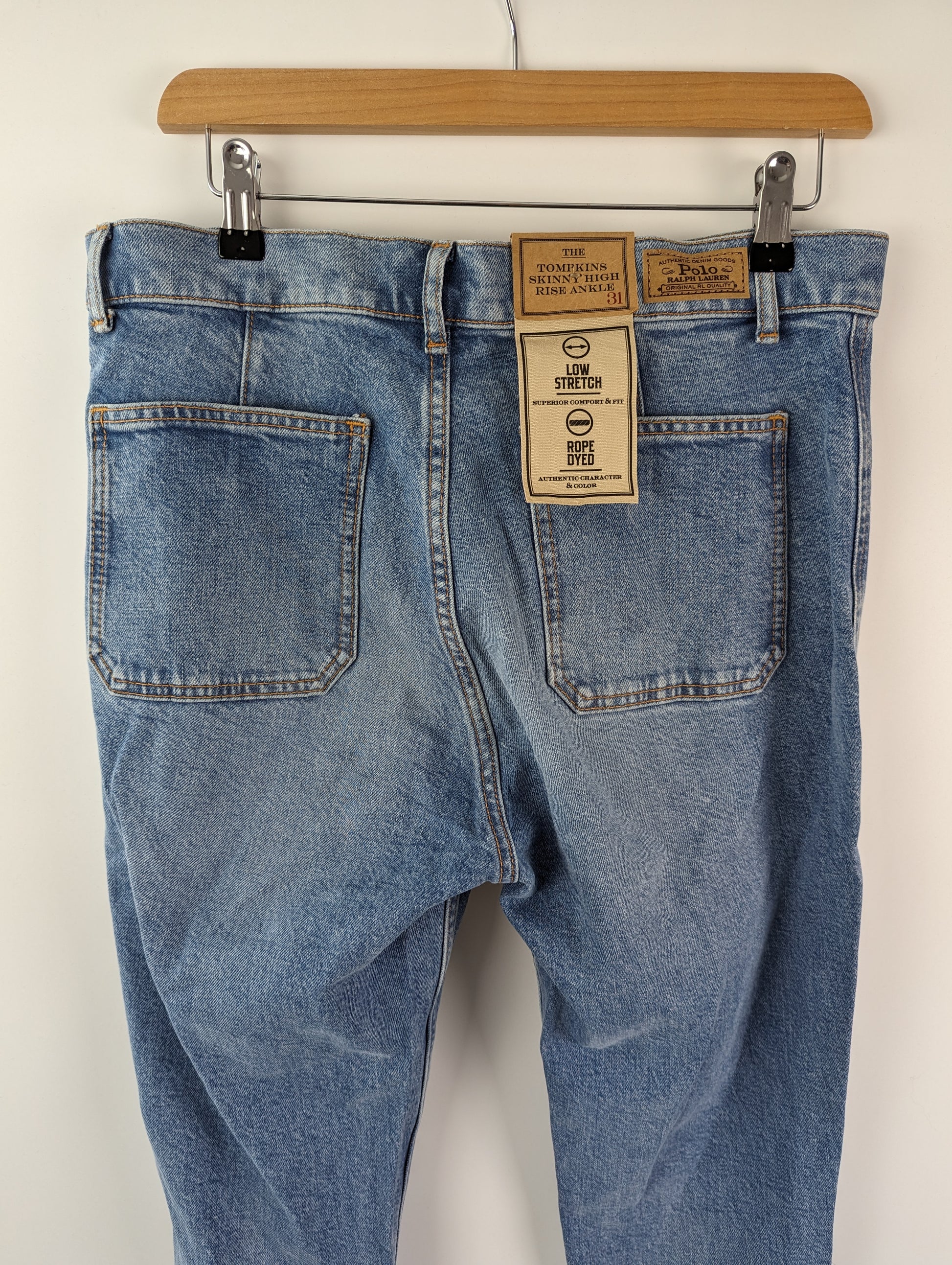 Add a staple piece to your casual collection with the Polo Ralph Lauren Tompkins jeans Made from an Cotton and elastane, these skinny fit stretch jeans feature a high waist with multipul buttons to fasten. The back pockets are mirrored to the front.