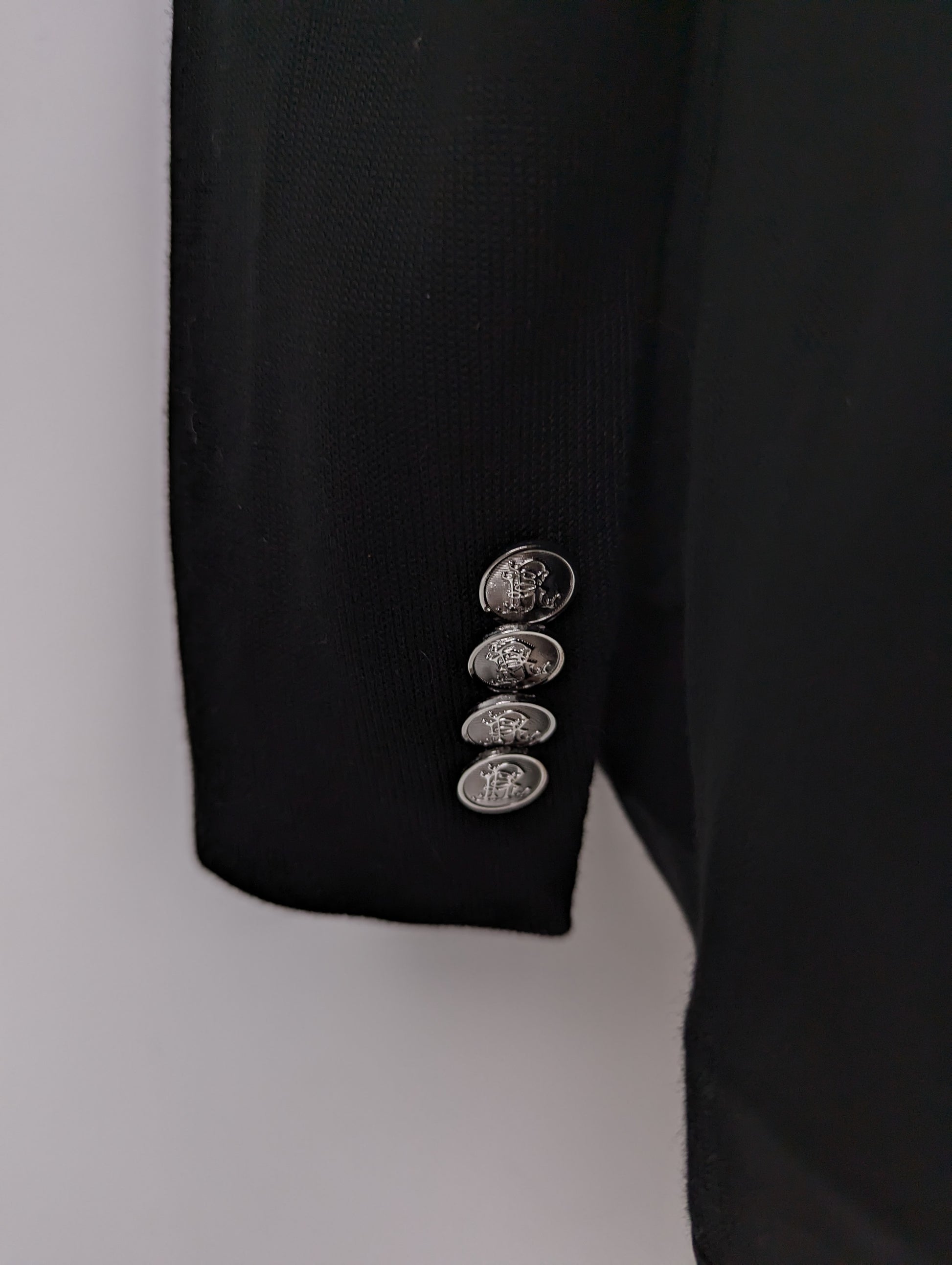 Woven from a cotton blend, this double-knit jacquard blazer is cut for a single-button, notch-lapel silhouette and accented with our signature monogram embroidered at the chest.