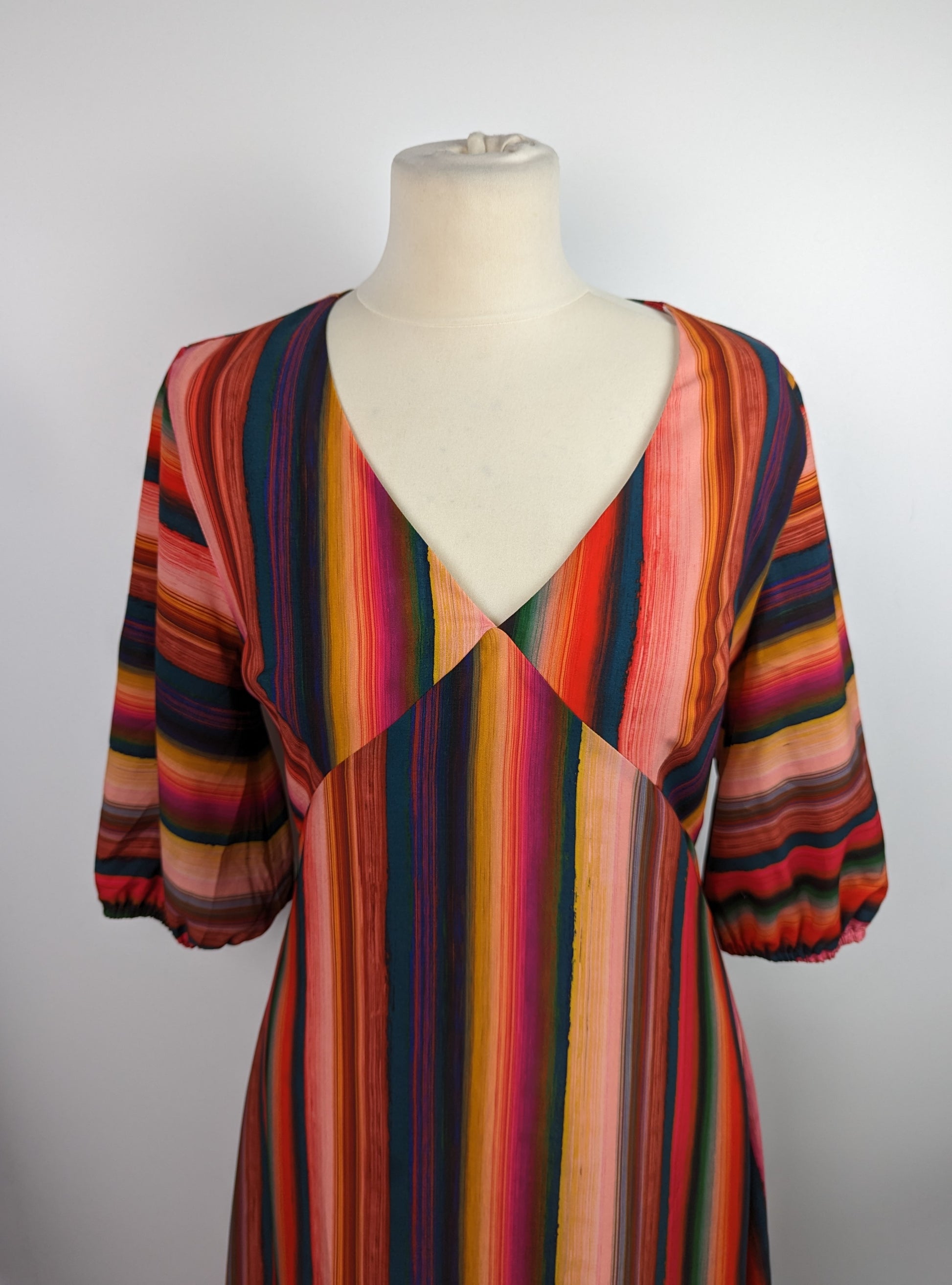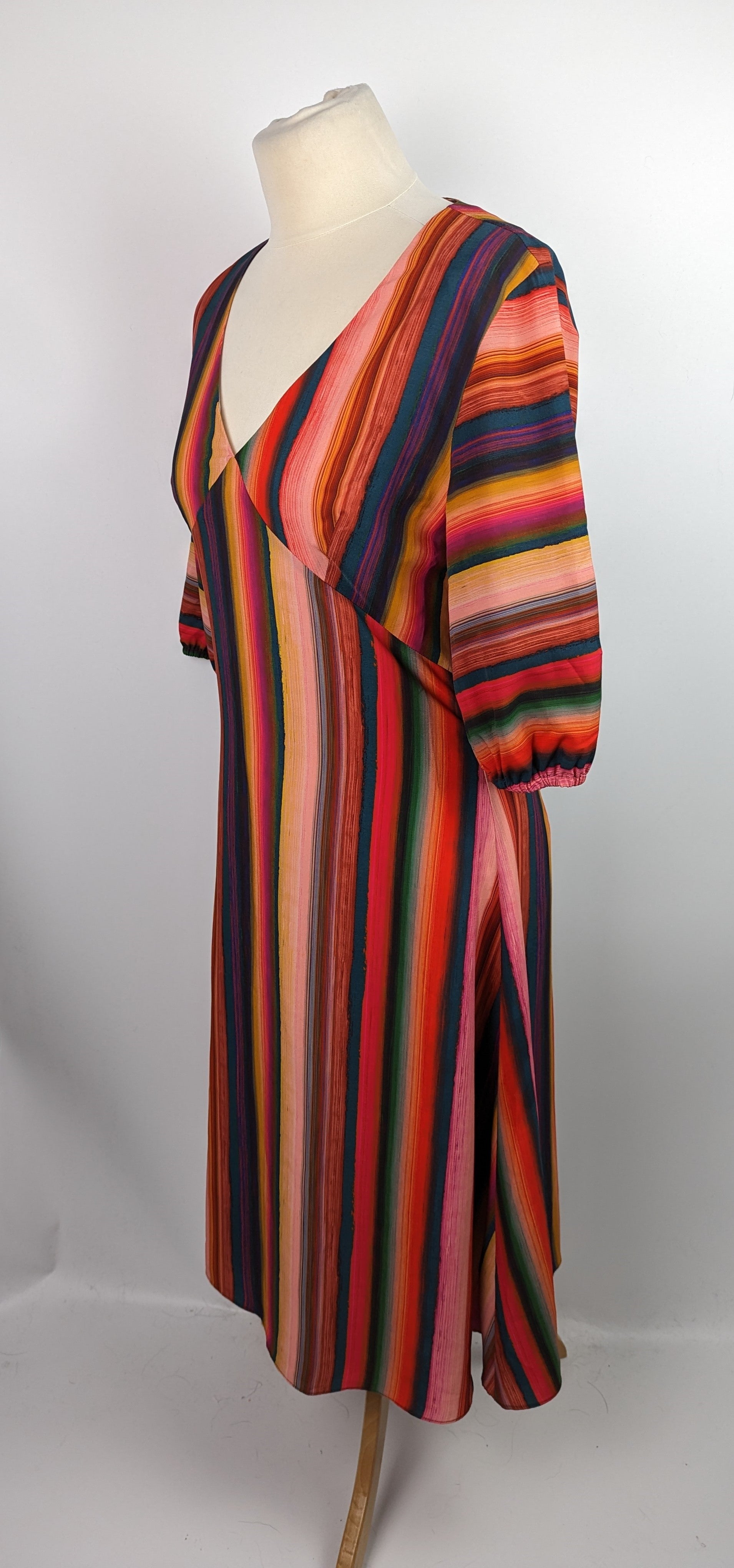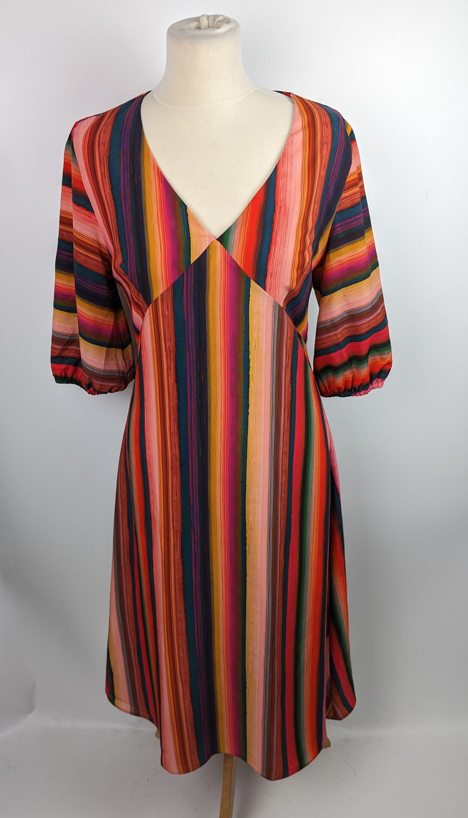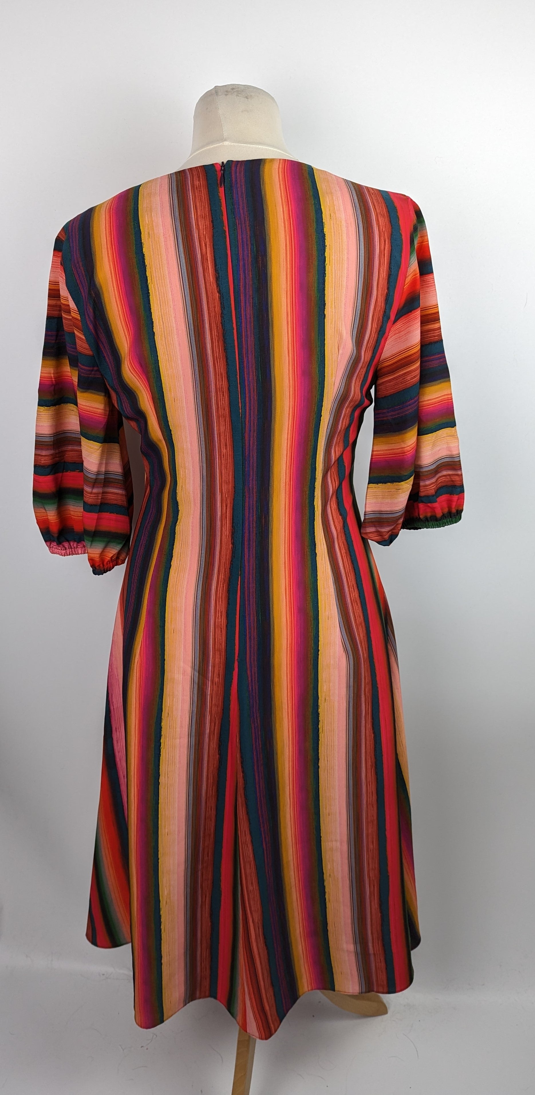 The Stripe Tea Dress by PS Paul Smith is a fabulous addition to your summer dress selection. Featuring a lightweight polyester construction in a multi tonal, vertical abstract stripe print. The design is finished with with a v-neckline, short sleeves with an elasticated trim and a zip fastening to the back.