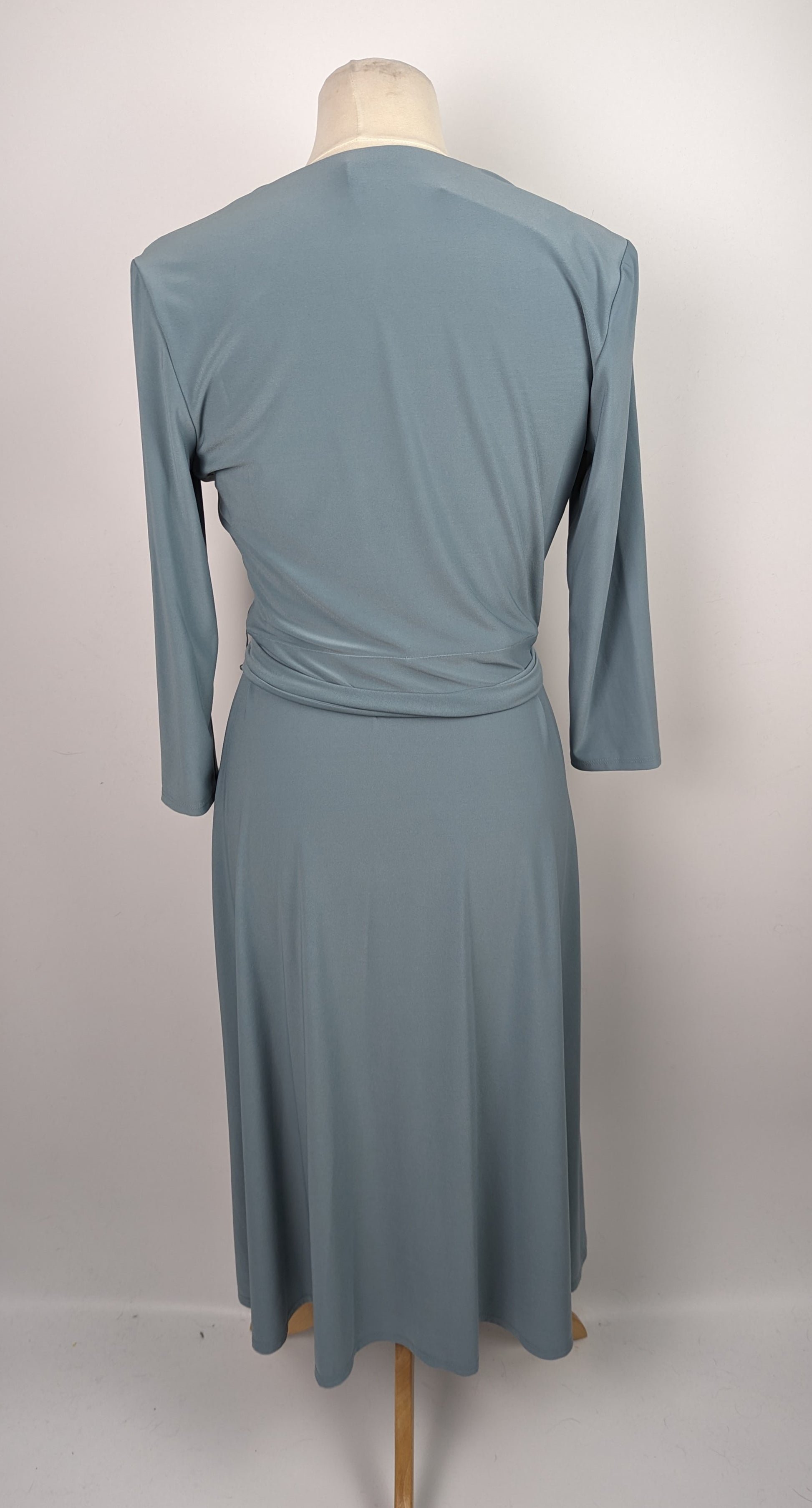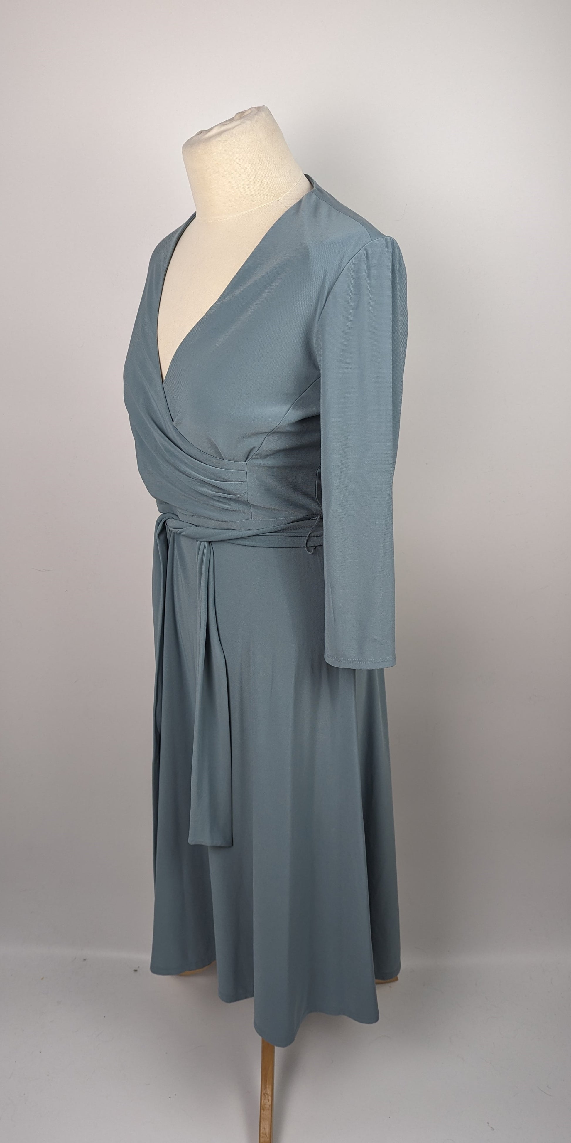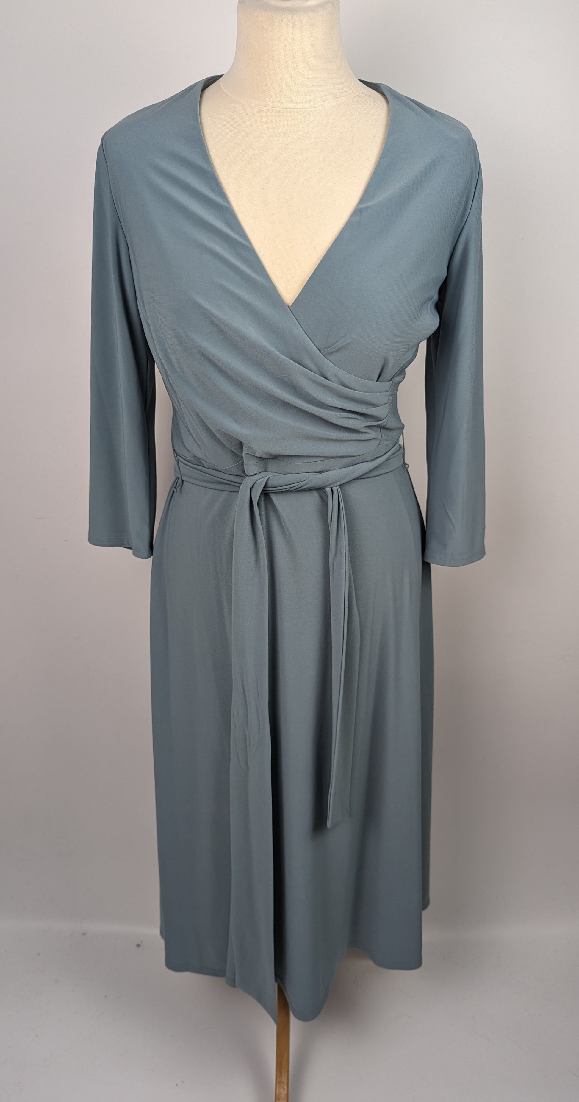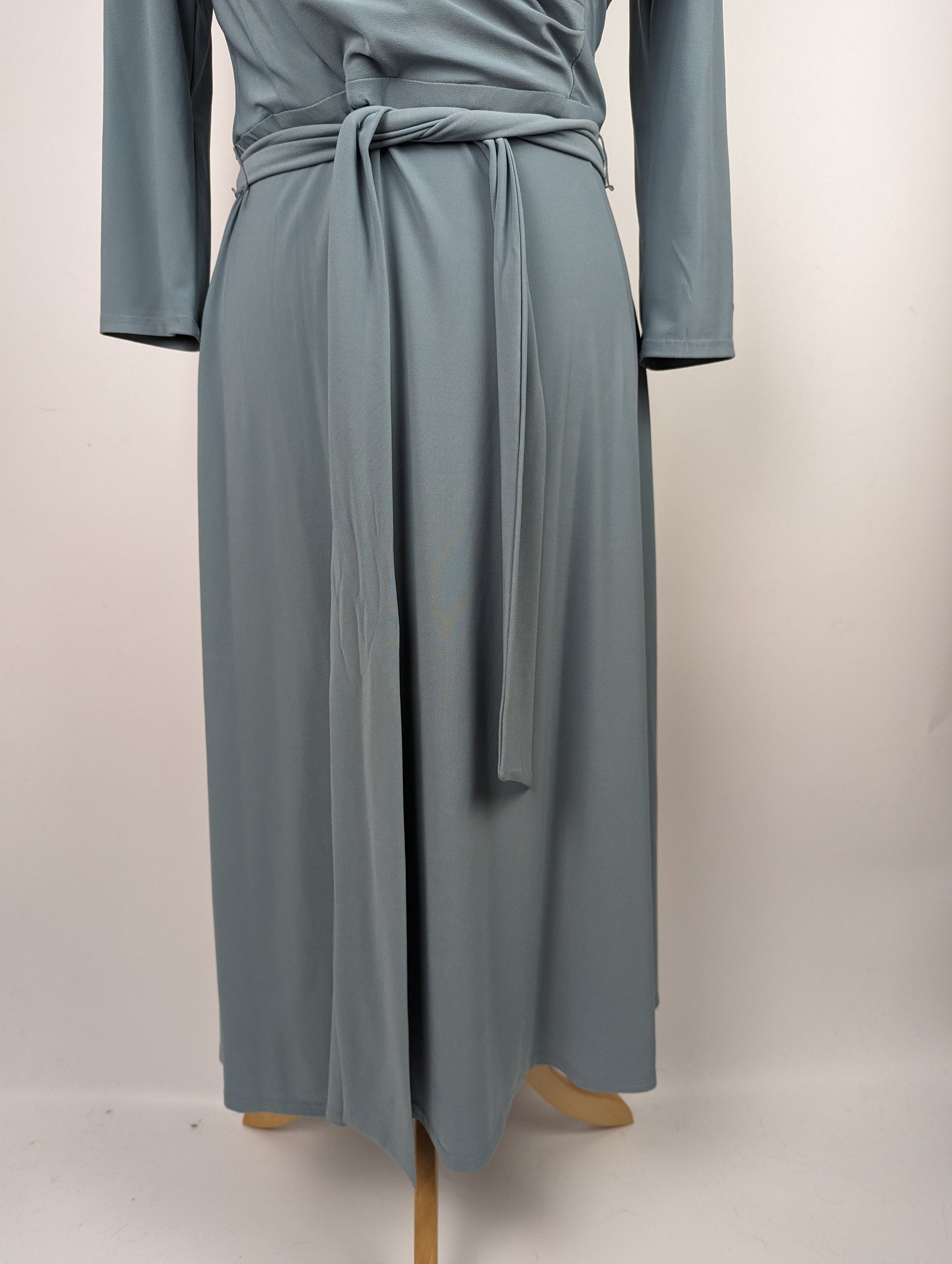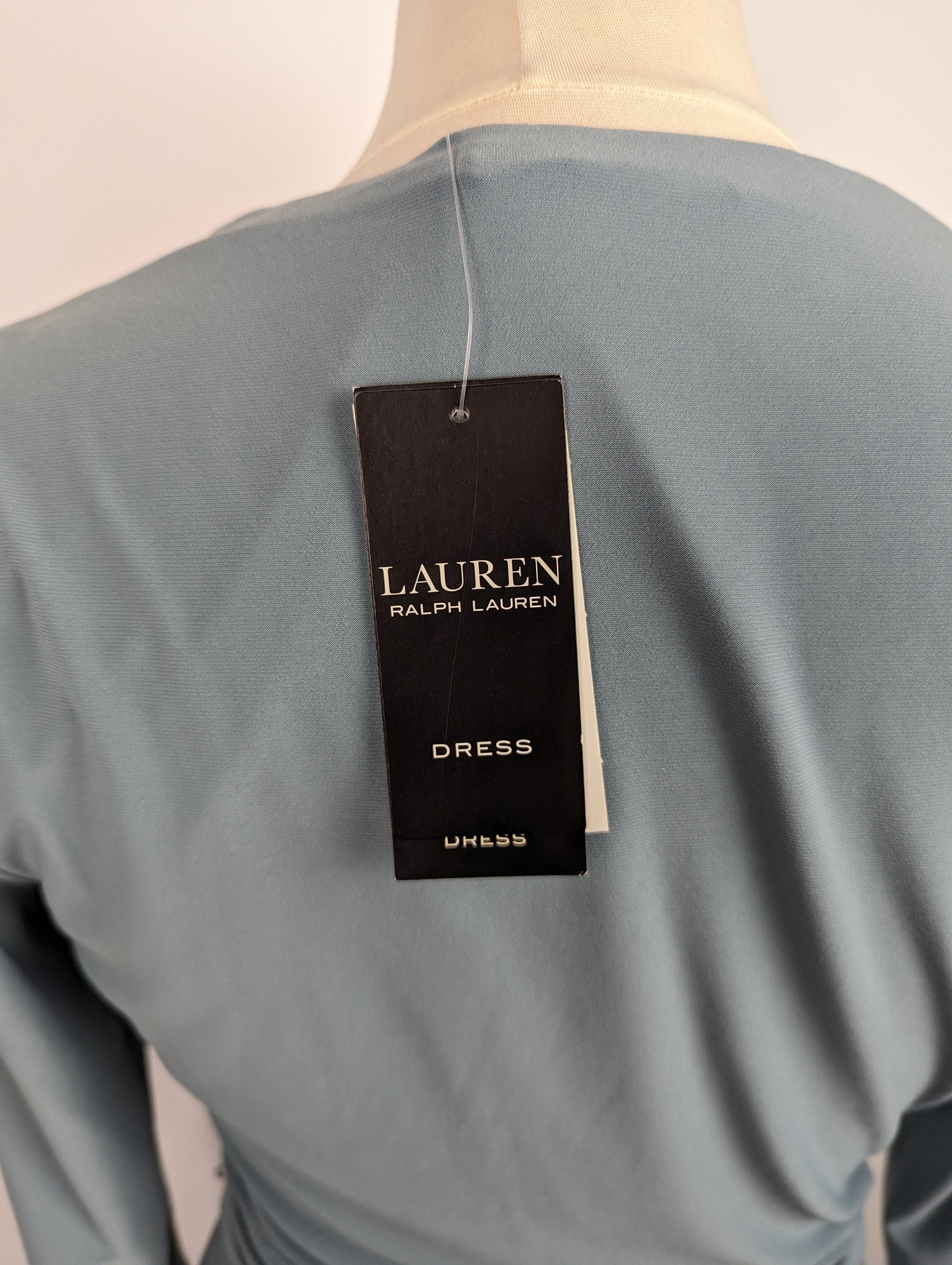Refresh your collection with this Lauren Ralph Lauren Carlyna Wrap Dress. Constructed in a wrap style with a tie waist for a secure fit, it features long sleeves and a V neckline for a classic look. This dress is a solid colouring throughout, in a striking blue grey "Highland sea" shade. A versatile, comfortable design, perfect for day or evening wear.