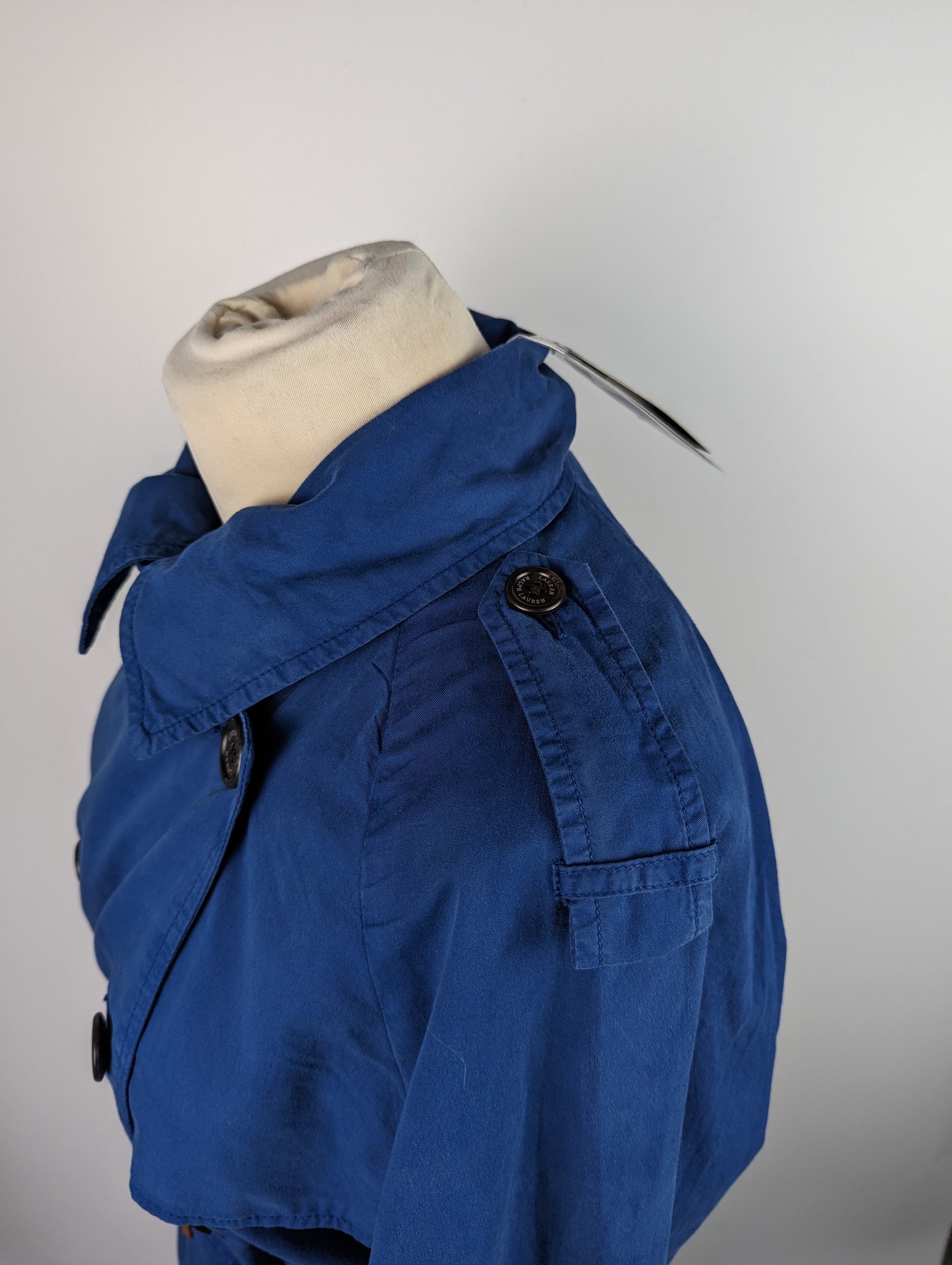 Stylish ladies Lauren Ralph Lauren coat. The Faustino Trench Coat is a longer length design, crafted in 100% cotton in an eye-catching indigo blue shade. The coat is a double breasted style with adjustable waist belt to add shape, and a slightly flared, lined skirt. Fastening with contrast brown buttons and metal clip fastener to the neck beneath a fold down collar, the coat has pockets at the waist to keep your essentials close at hand. Perfect paired with skinny jeans and ankle boots, or over a lighter dress in Spring, the Faustino Trench Coat is a must have piece that will go on and on.