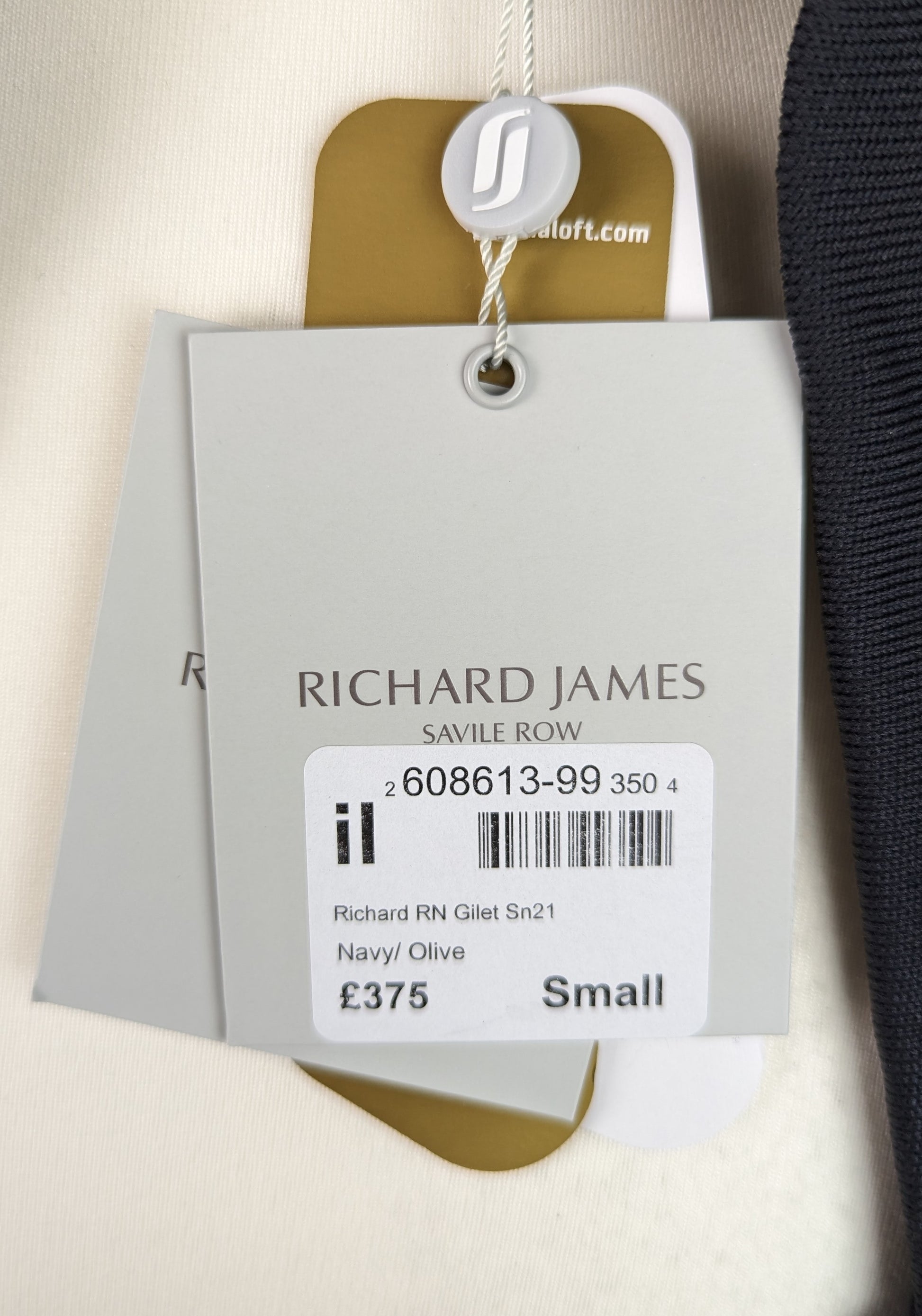 RICHARD JAMES Lightweight Rib Neck Gilet - Navy Blue / Olive