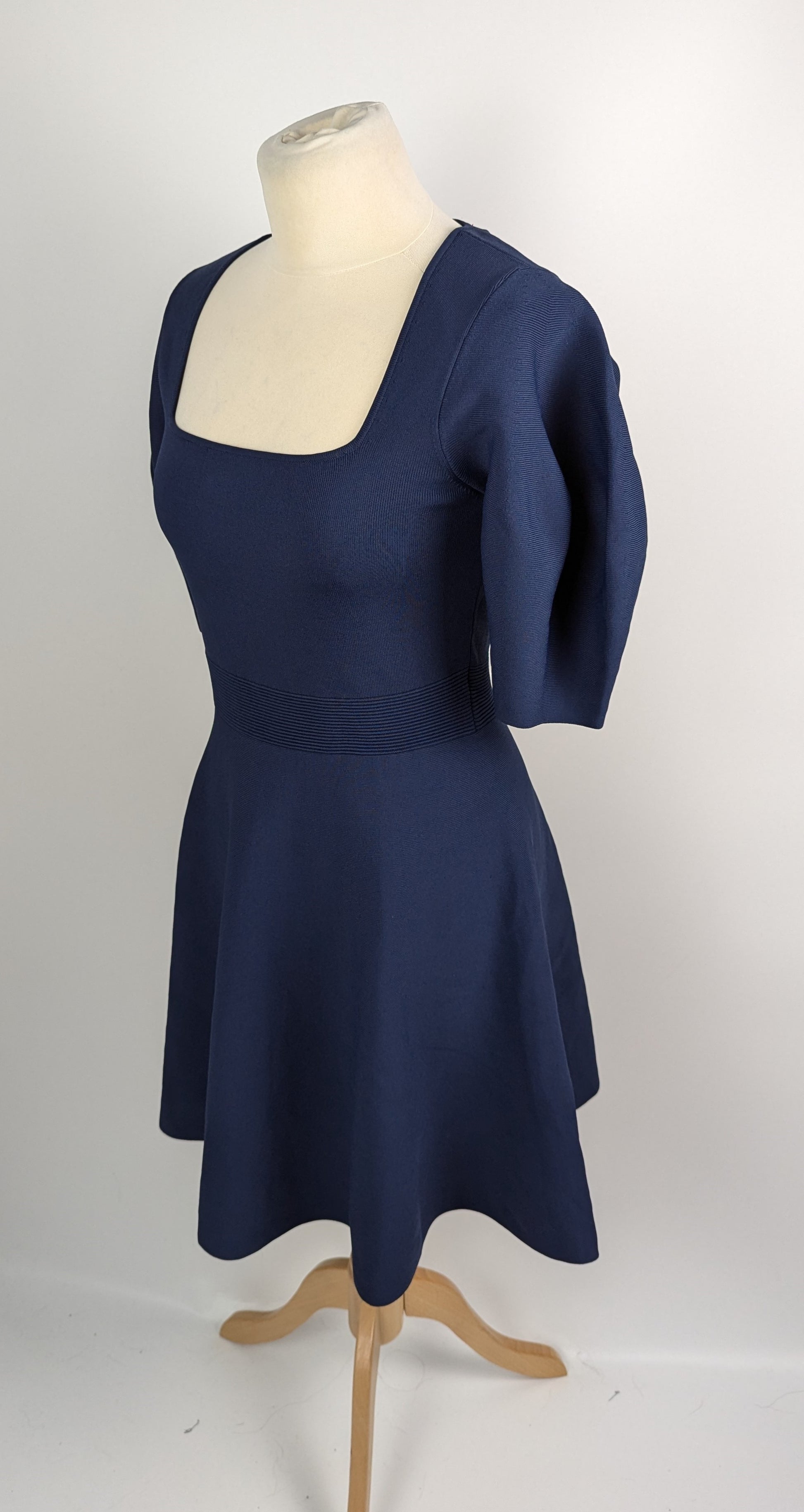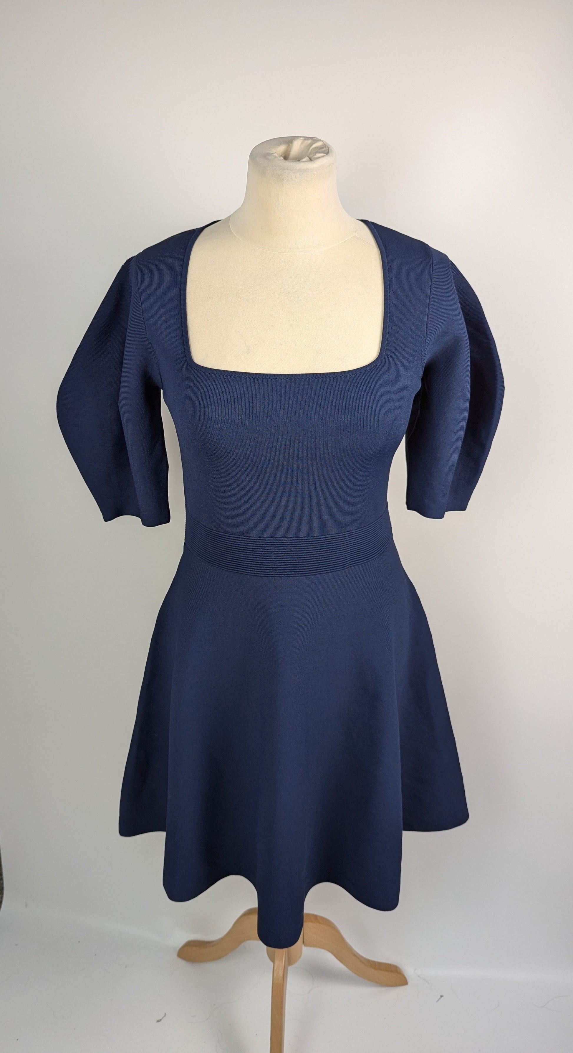 Step into effortless elegance with the Hayliy Puff Sleeve Skater Dress by Ted Baker, a brand renowned for their exquisite craftsmanship and timeless style. Perfectly capturing the essence of femininity, this above-the-knee dress is a true wardrobe staple that seamlessly transitions from day to night. Crafted from a luxurious viscose blend with added stretch, this knit dress ensures both comfort and style. The short puff sleeves and square neckline add a touch of sophistication, while the skater skirt and elasticated waistband create a flattering silhouette that beautifully accentuates your curves.