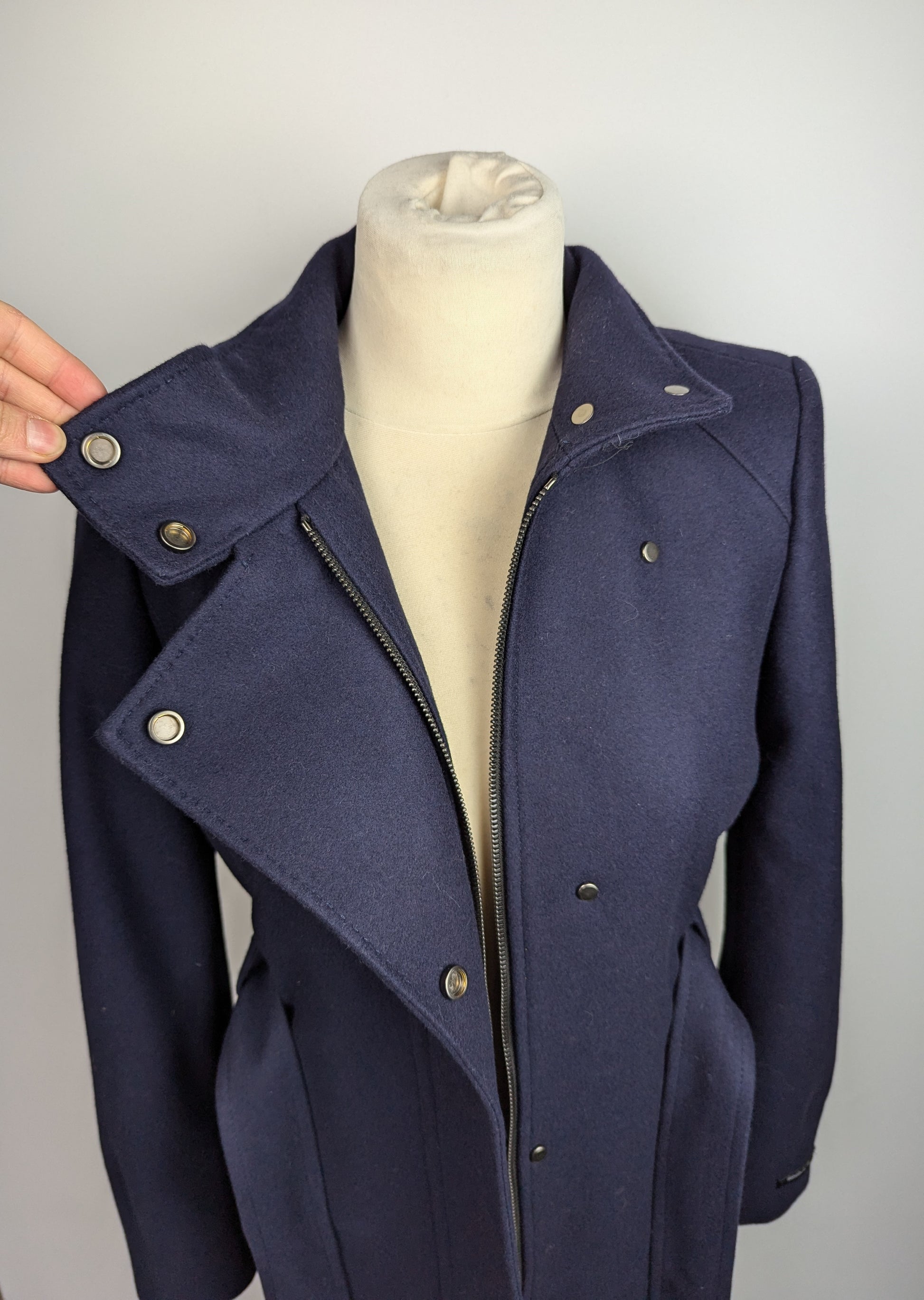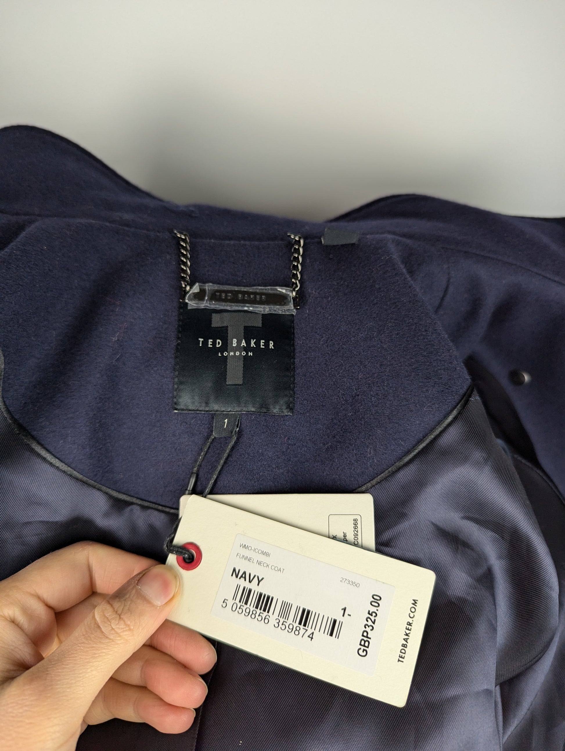 TED BAKER Icombi Funnel Neck Wool Blend Coat - Navy