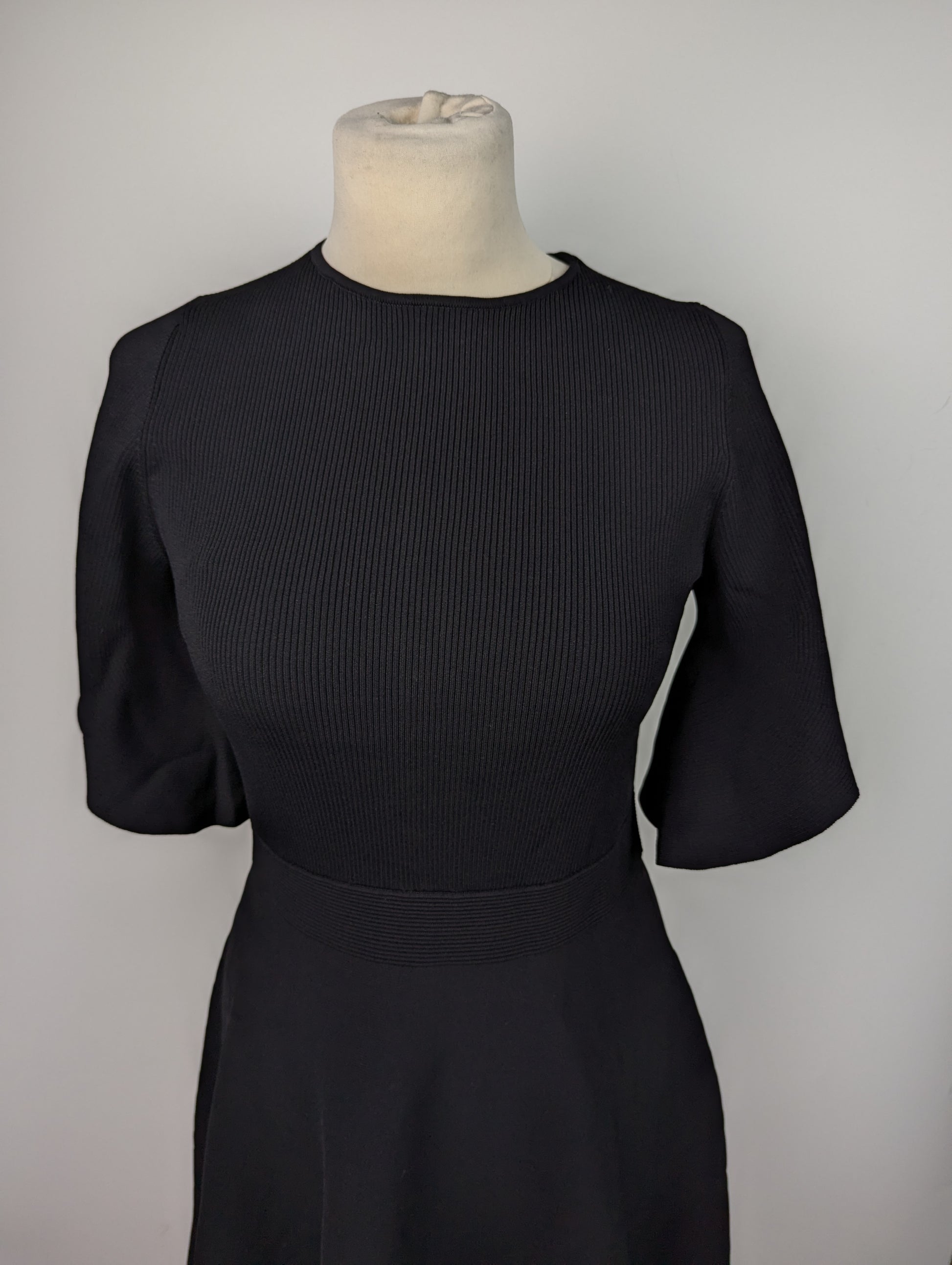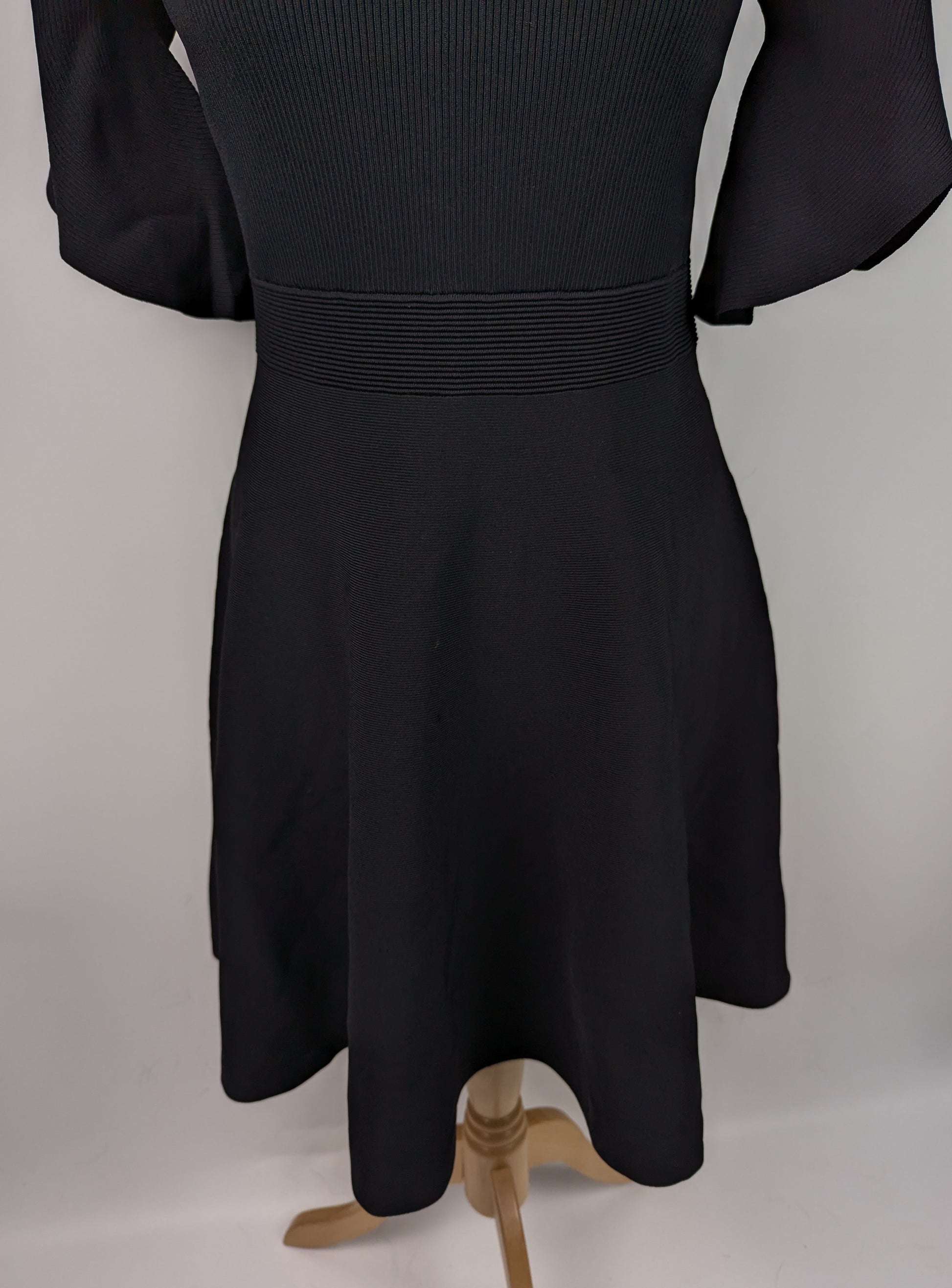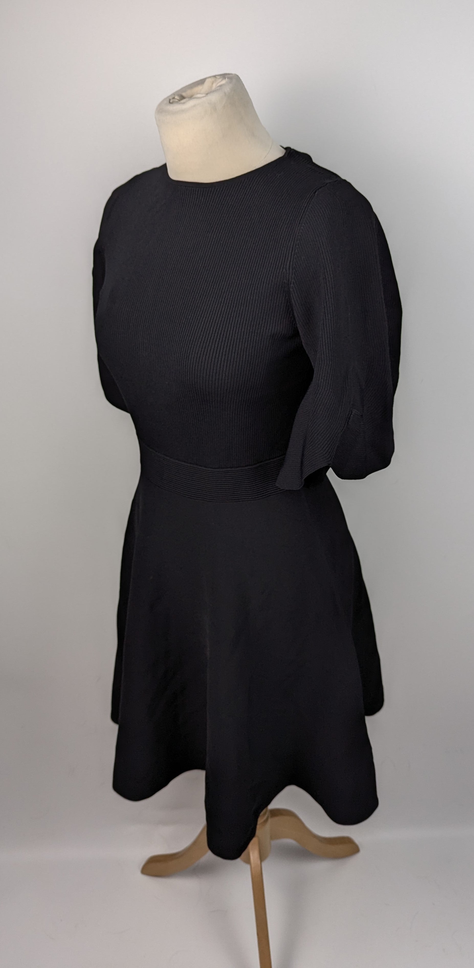 Elegant and flattering, OLIVIHA is the dress for many an occasion. The classic skater silhouette features a flattering fitted bodice and a full skirt that boasts plenty of flounce. The short sleeves have a wide fluted style with a tulip shape hem, bringing an elegant finish and adding flow to this piece. It's made from a ribbed knit material for a comfortable fit and fastens at the back with an exposed zip.