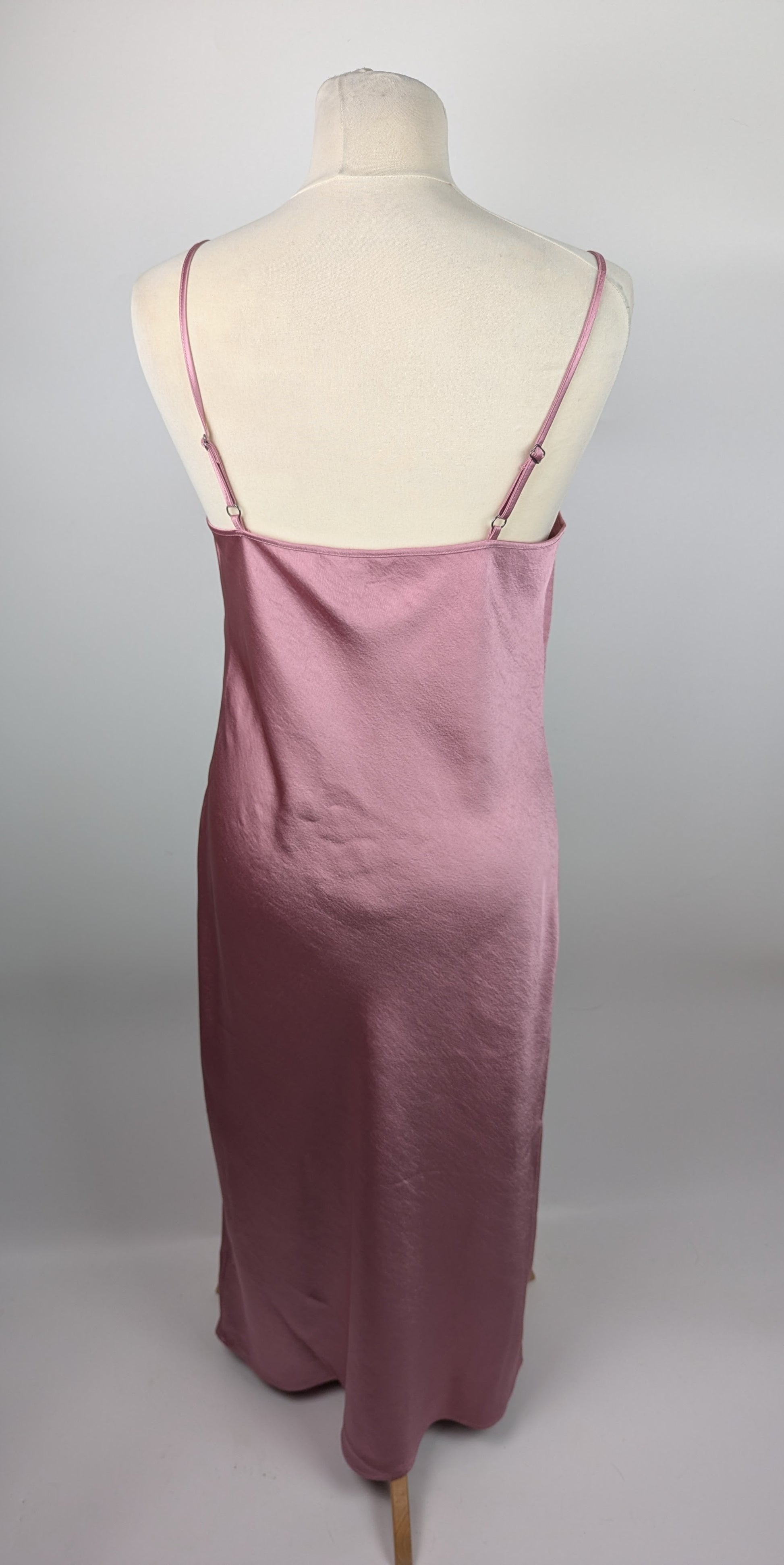 Featuring delicate spaghetti straps with adjustable sizing for a customised fit, this mid-length slip dress offers effortless elegance. A discreet side zip closure ensures a secure, polished finish whilst maintaining the dress's refined silhouette.