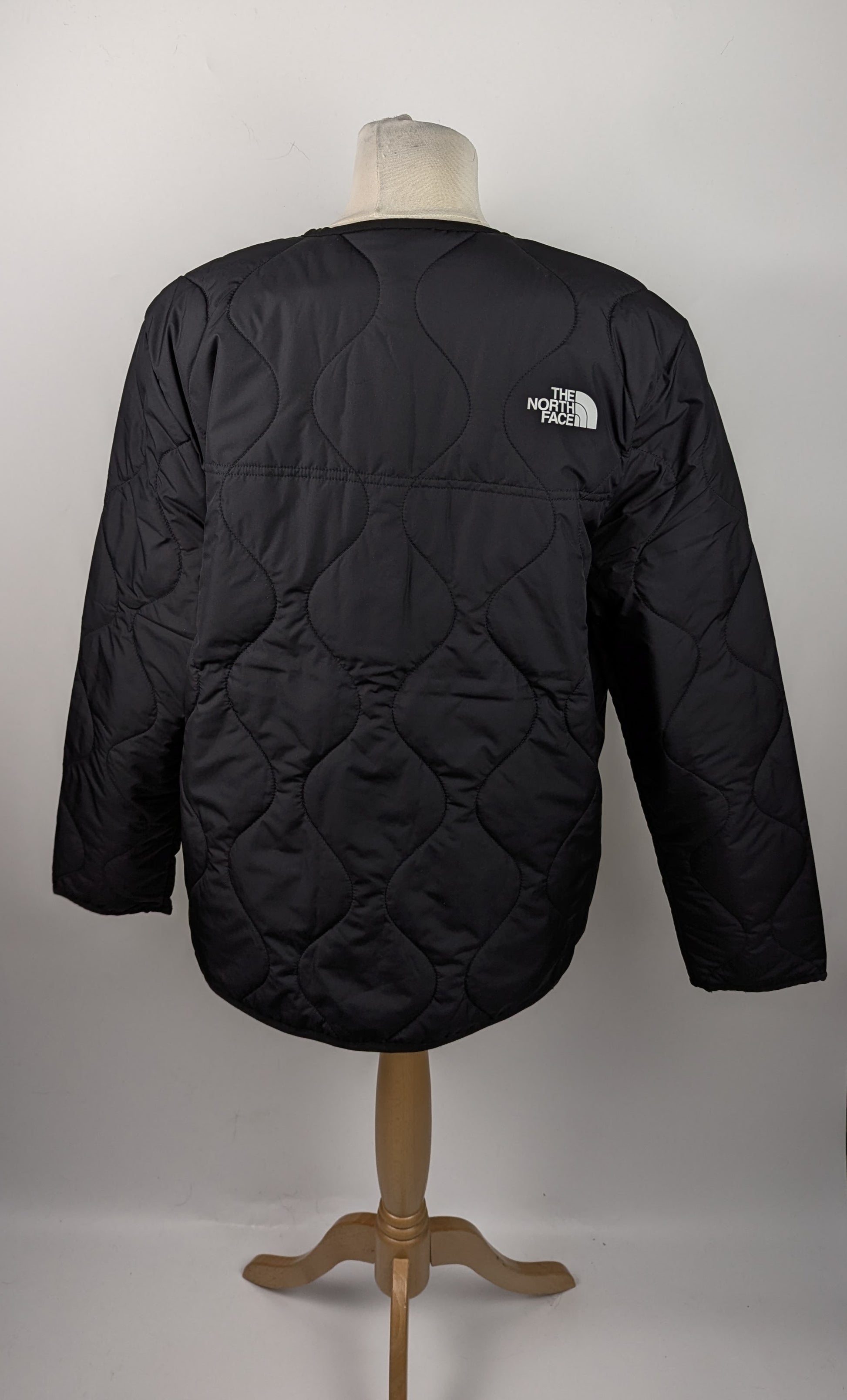 Designed for outdoor activities such as hiking and trekking, The North Face Ampato Quilted Liner Jacket in dark sage is equipped to withstand rainy weather. Featuring a classic crew neckline and button fastening, this jacket also includes convenient flap pockets with a button panel and a sleek plain pattern. Characteristics: Wind resistance and water repellences are key features of this jacket.