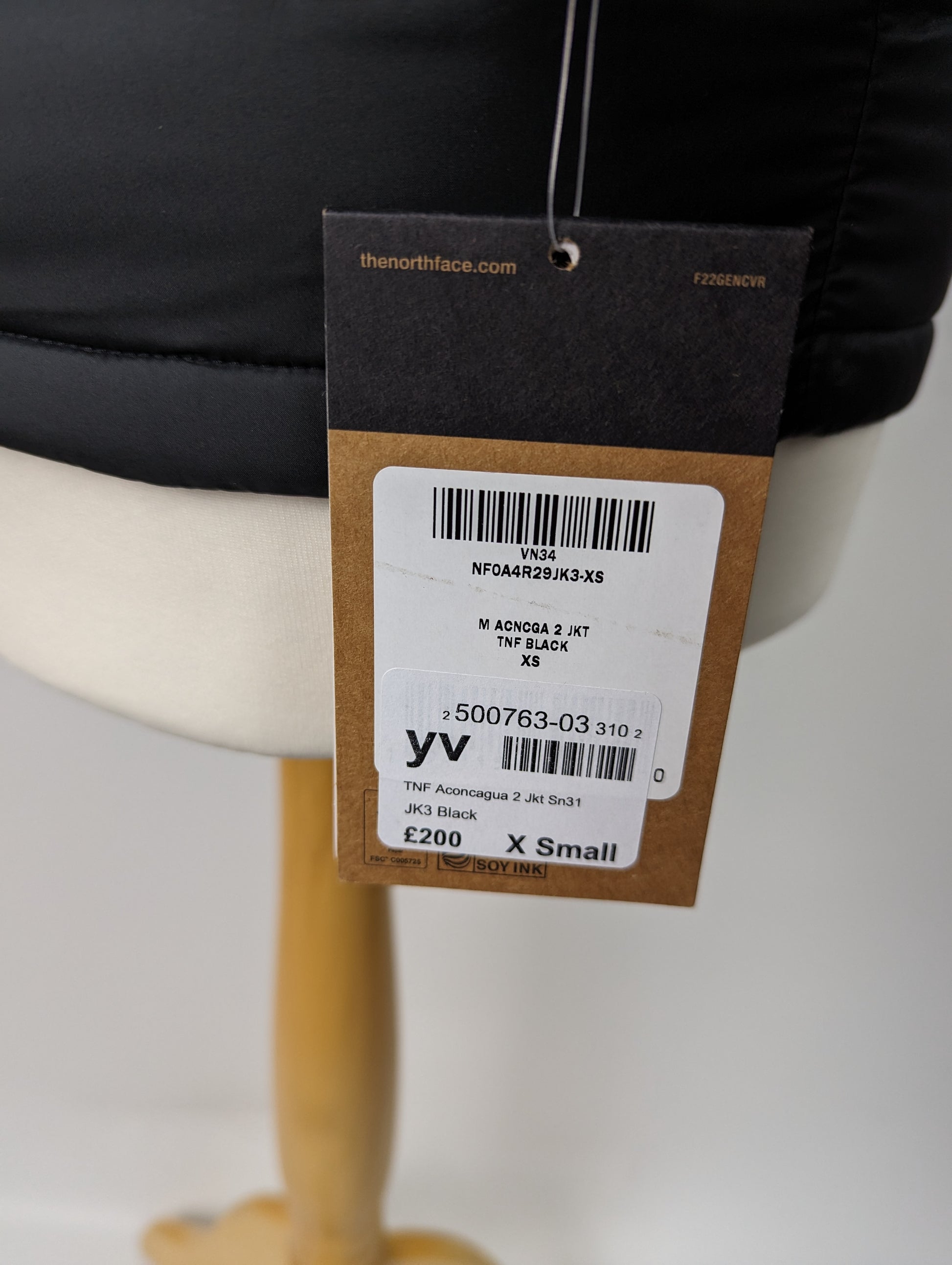 Perfect for the cold winter months, the Aconcagua 2 Down Jacket from The North Face is the ideal addition to your outerwear. Crafted from a water-resistant recycled polyester composition, this essential garment features a hooded neckline, a central zip fastening, a zip closed chest pocket, two zip fastened hand pockets, long sleeves, a straight hem and elasticated hems for comfort. Adorned in a solid colourway throughout, the design is elevated with an embroidered North Face logo to the chest and a counterpart to the rear and is completed with tonal quilted stitching filled with responsibly sourced down. Shell / Lining: 100% recycled polyester. Filling: 80% responsibly sourced down, 20% waterfowl feathers. Other Filling: 100% recycled polyester.
