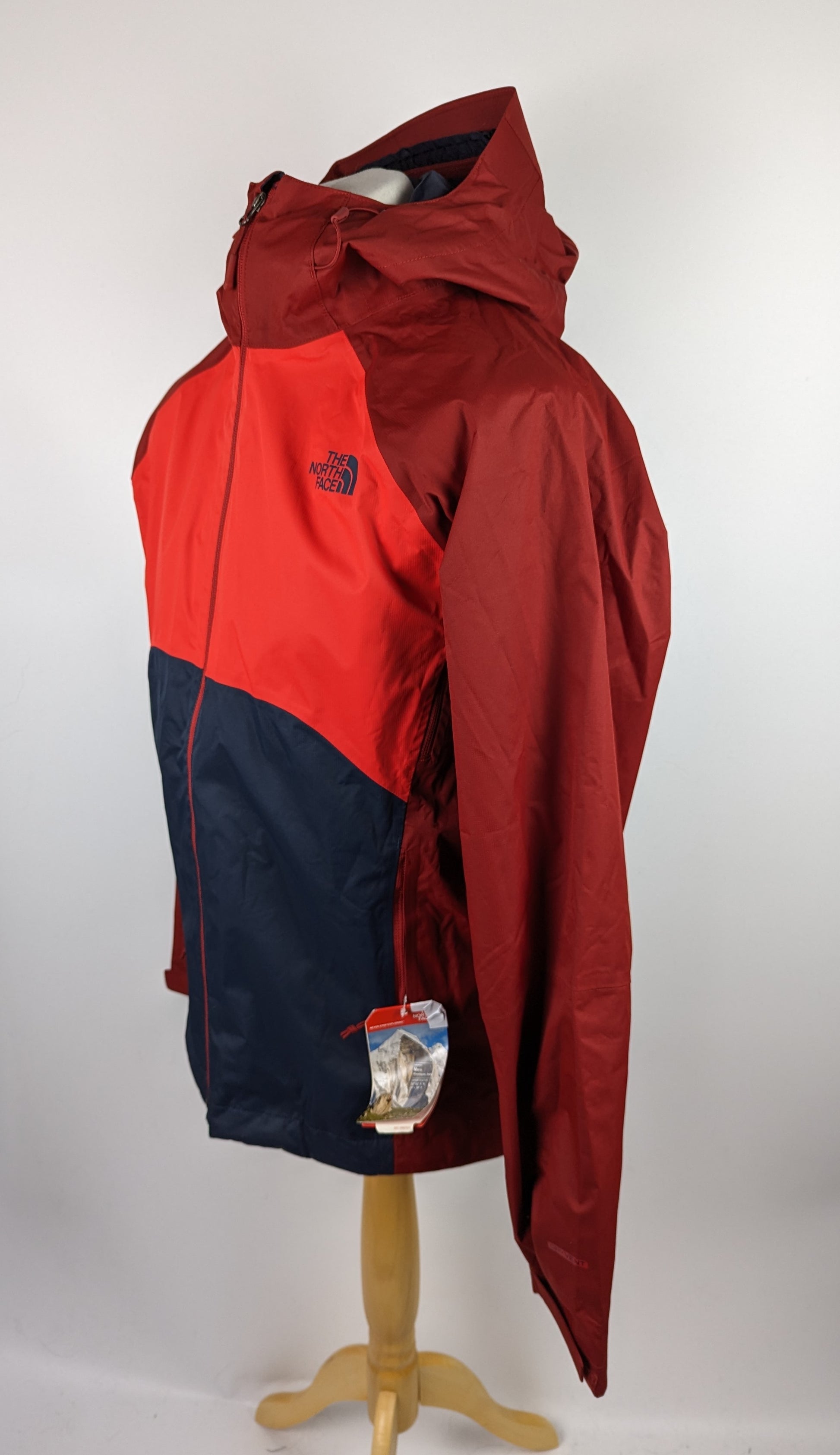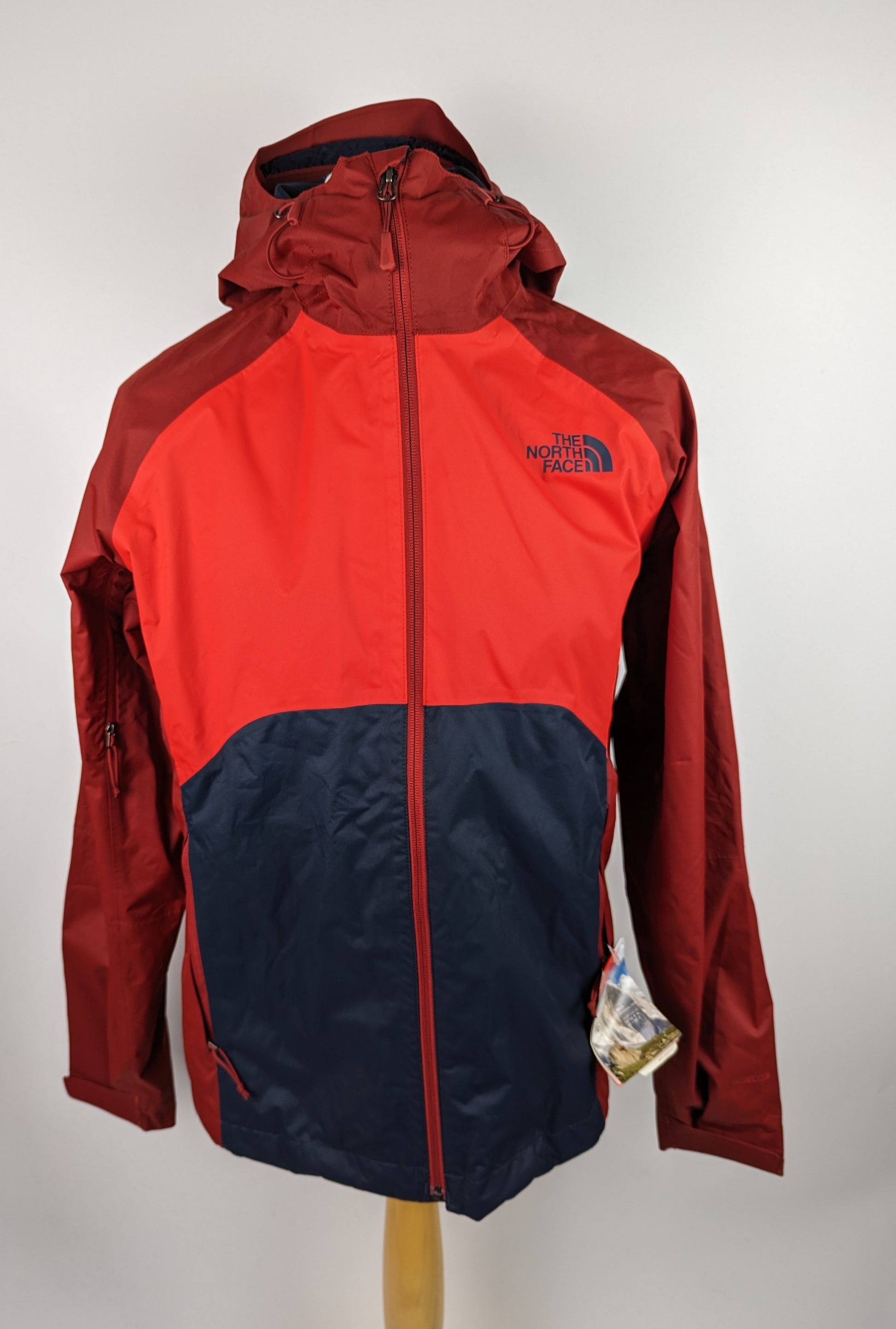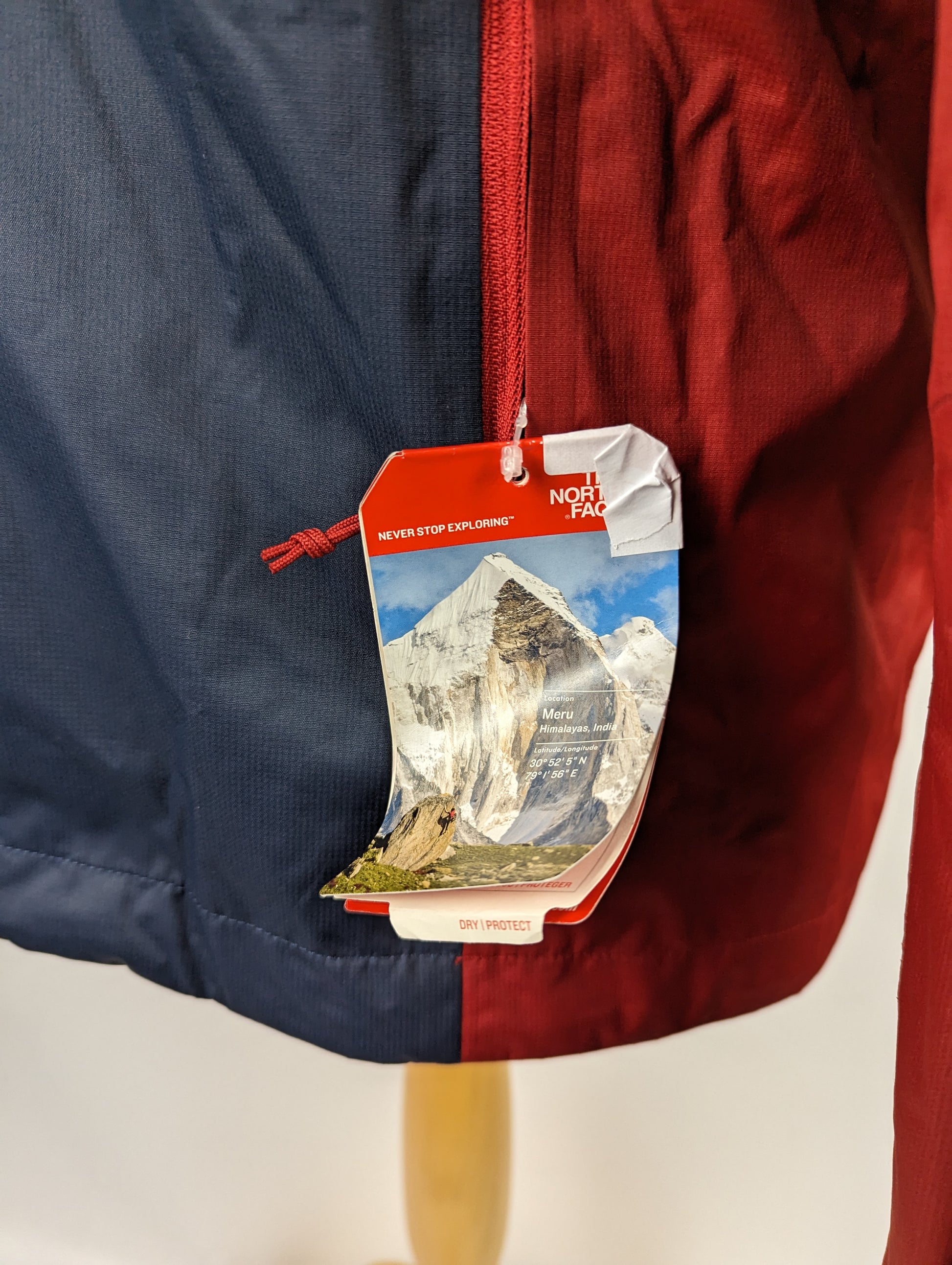 Don’t let rain dampen your adventures! The Sequence Waterproof Jacket from The North Face is a fully weatherproof, highly breathable shell that will keep you dry inside and out. Its construction combines a DryVent™ waterproof outer fabric with a ventilated mesh lining to ensure that you remain comfortable and protected outdoors. An adjustable hood and zipped pockets complete the look. The jacket is a combination of bright red tones and a complimentary darker blue for high vision and high style.