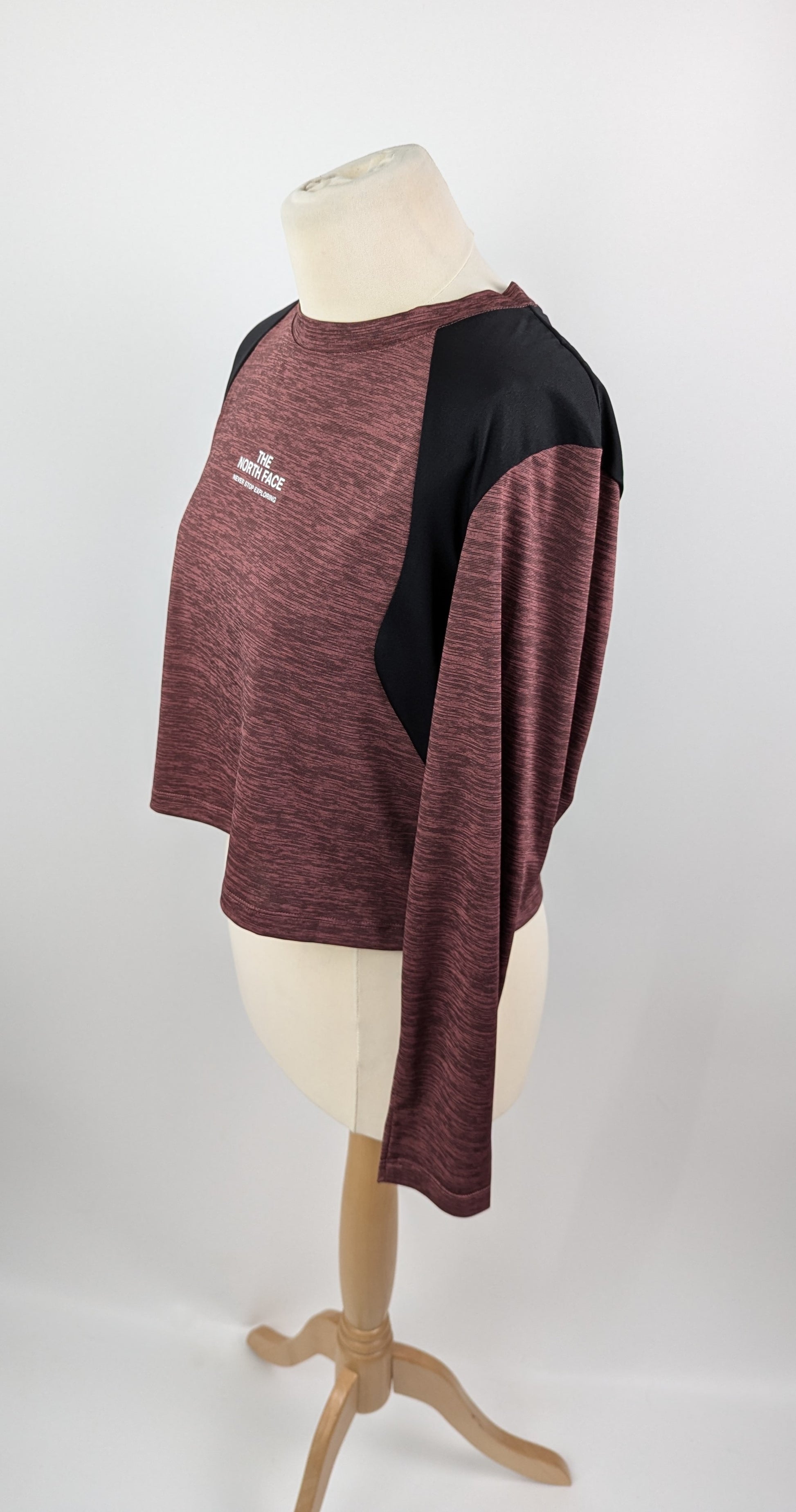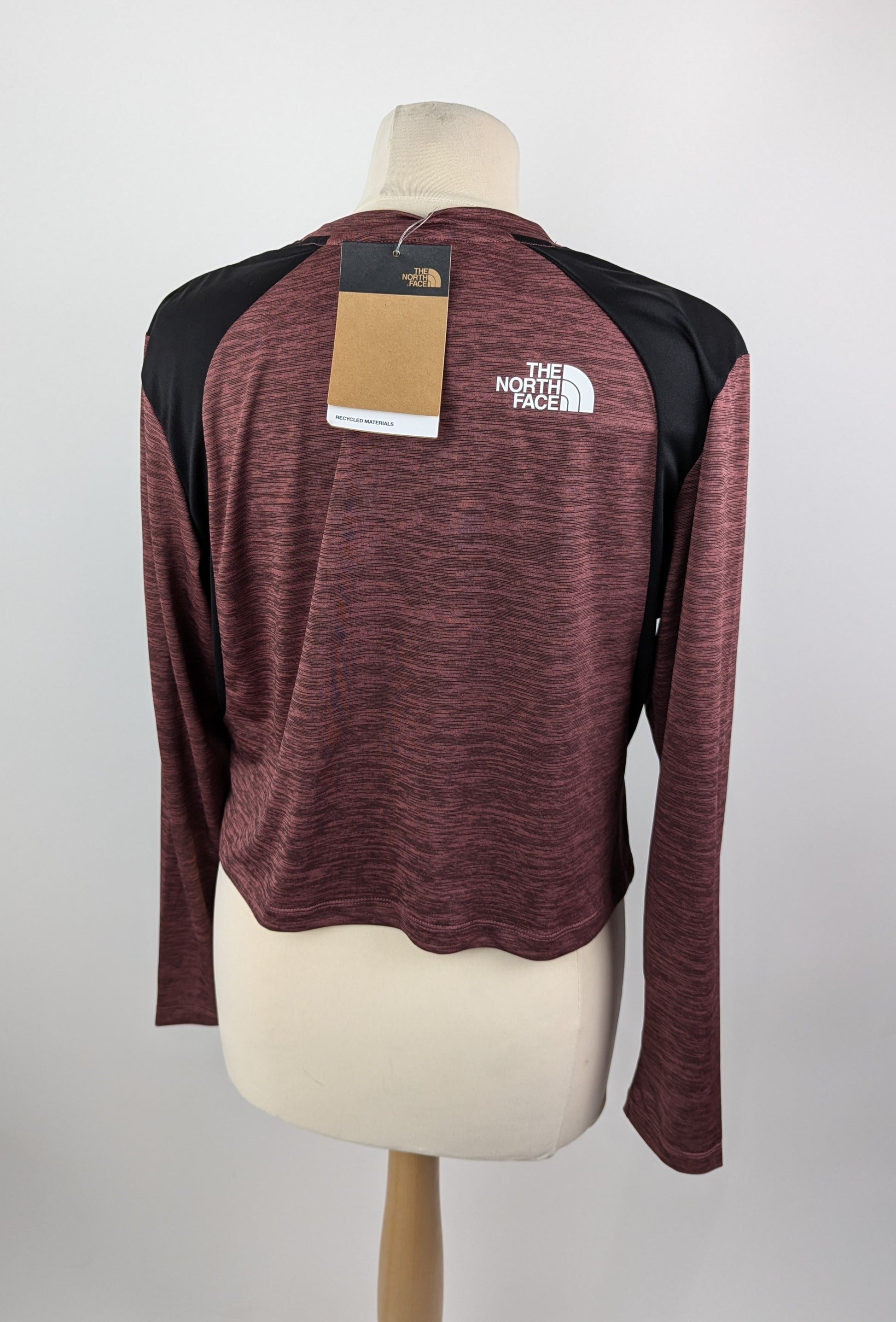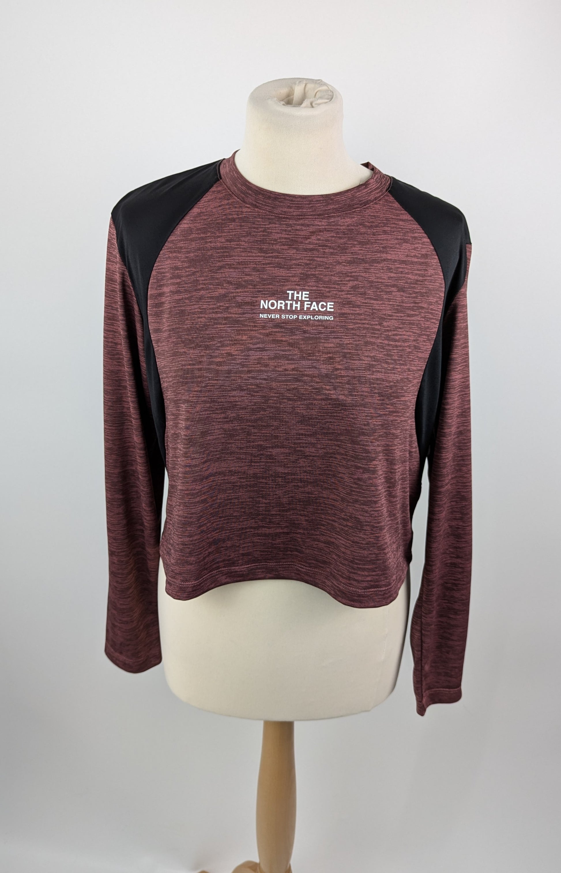 The North Face Training Athletics long sleeve top in pink features a prominent logo displayed at the centre of the chest and a cropped finish.