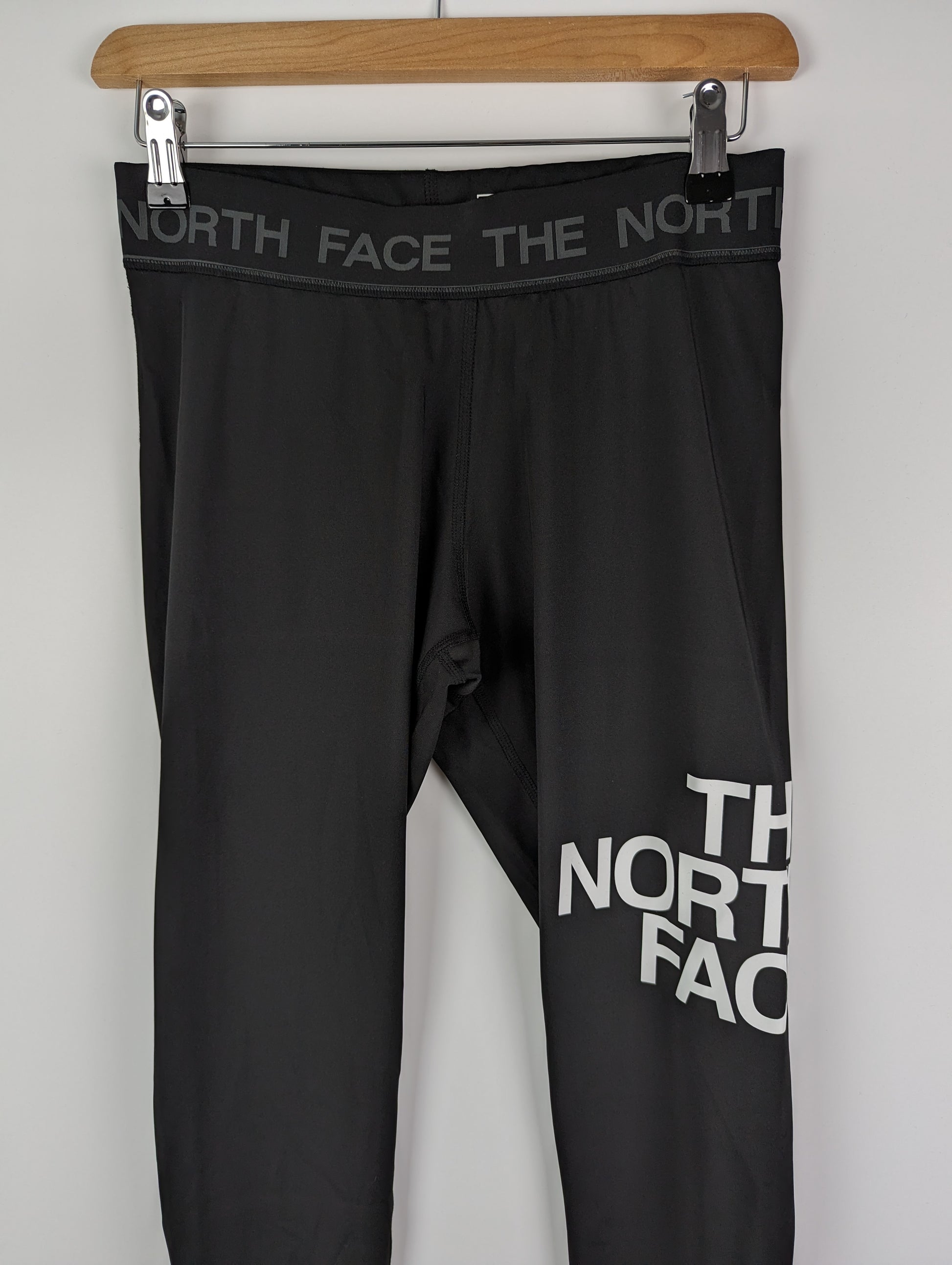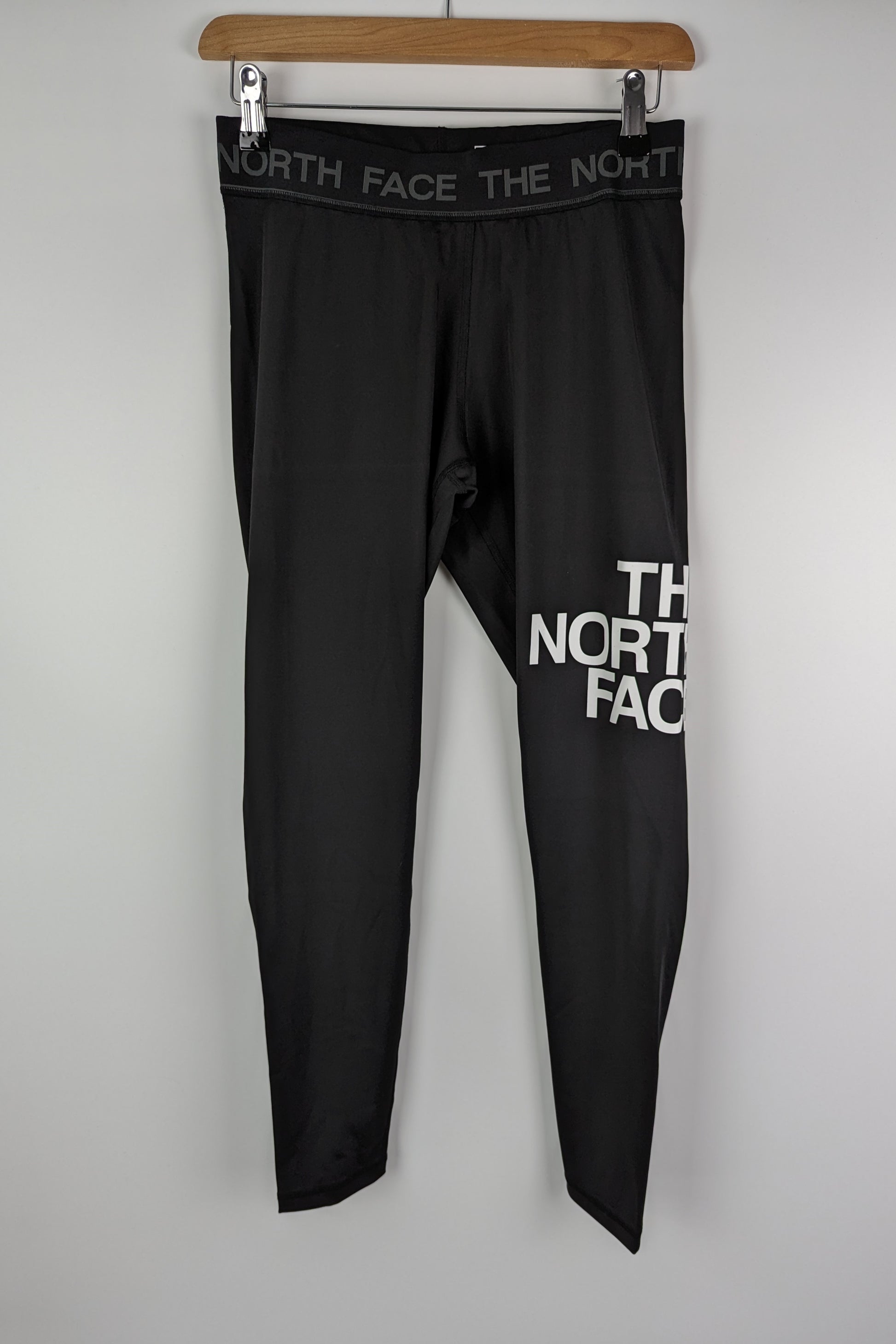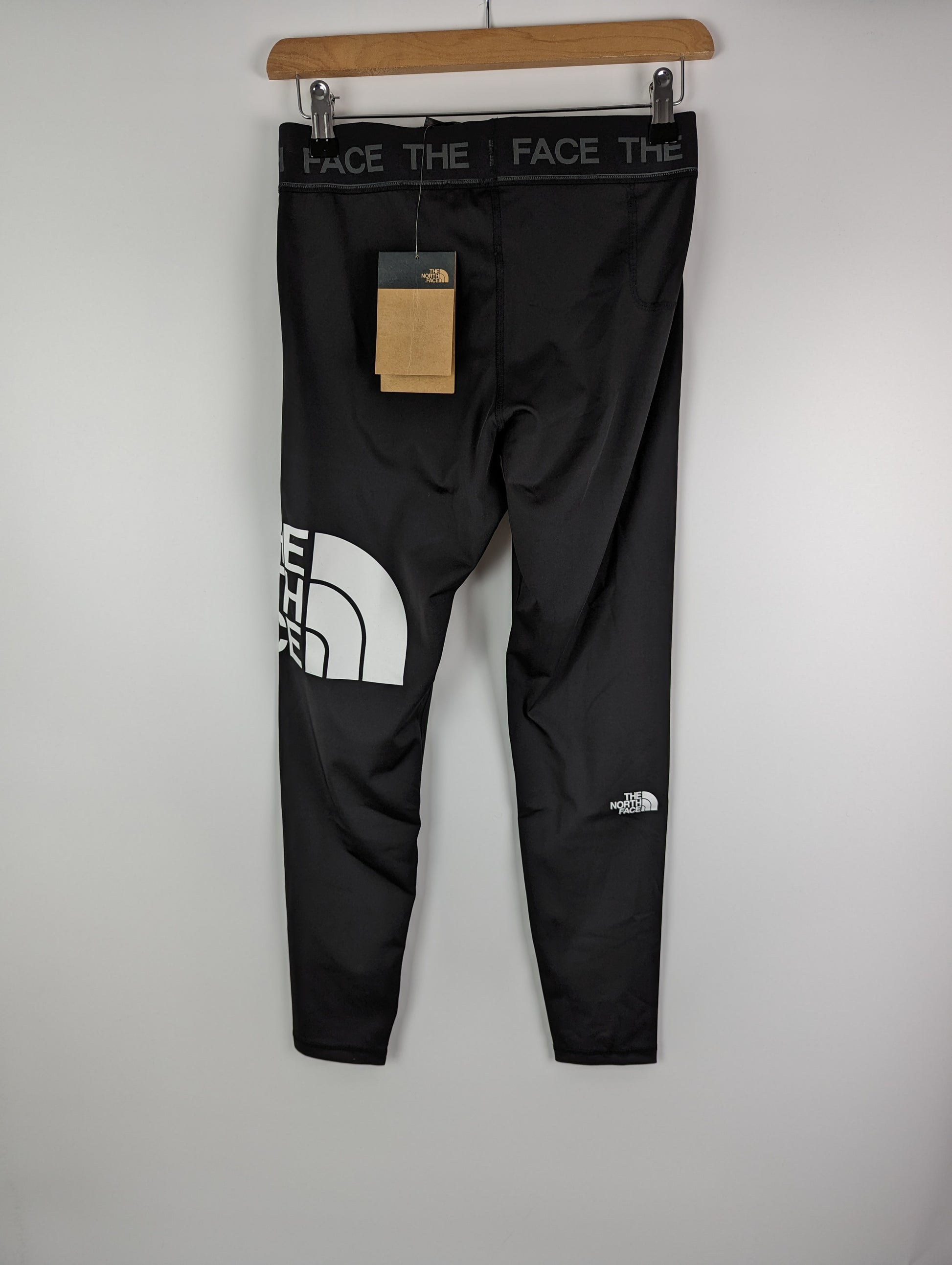 These leggings feature a full-length, mid rise fit perfect for training. The waistband is branded with TNF and includes a hidden stash pocket and adjustable inner cords. A large contrast TNF graphic can be found on the left leg, with the TNF logo displayed on the back.