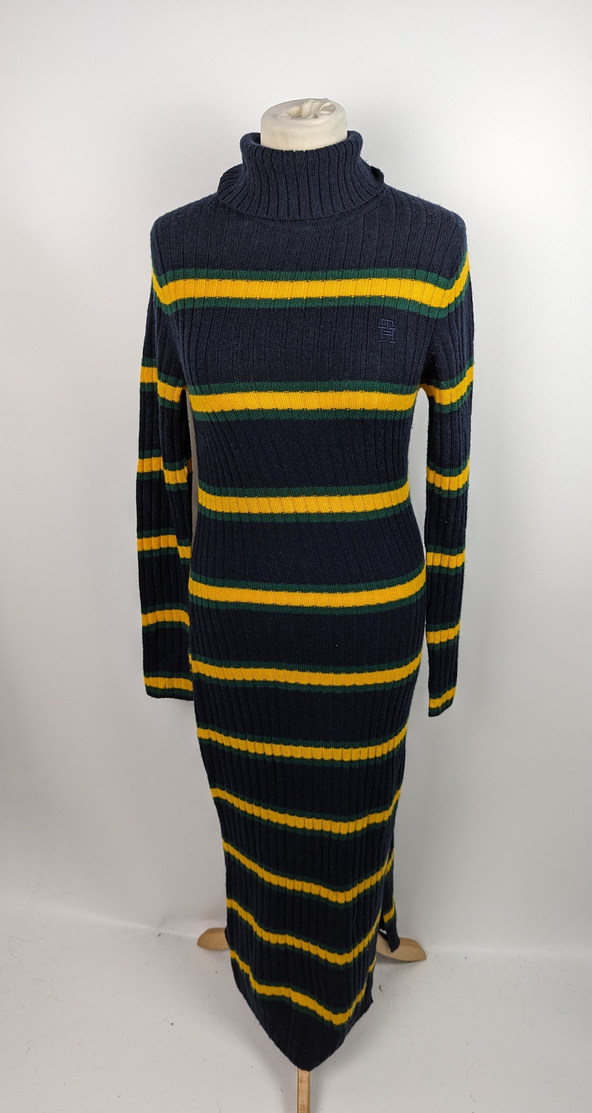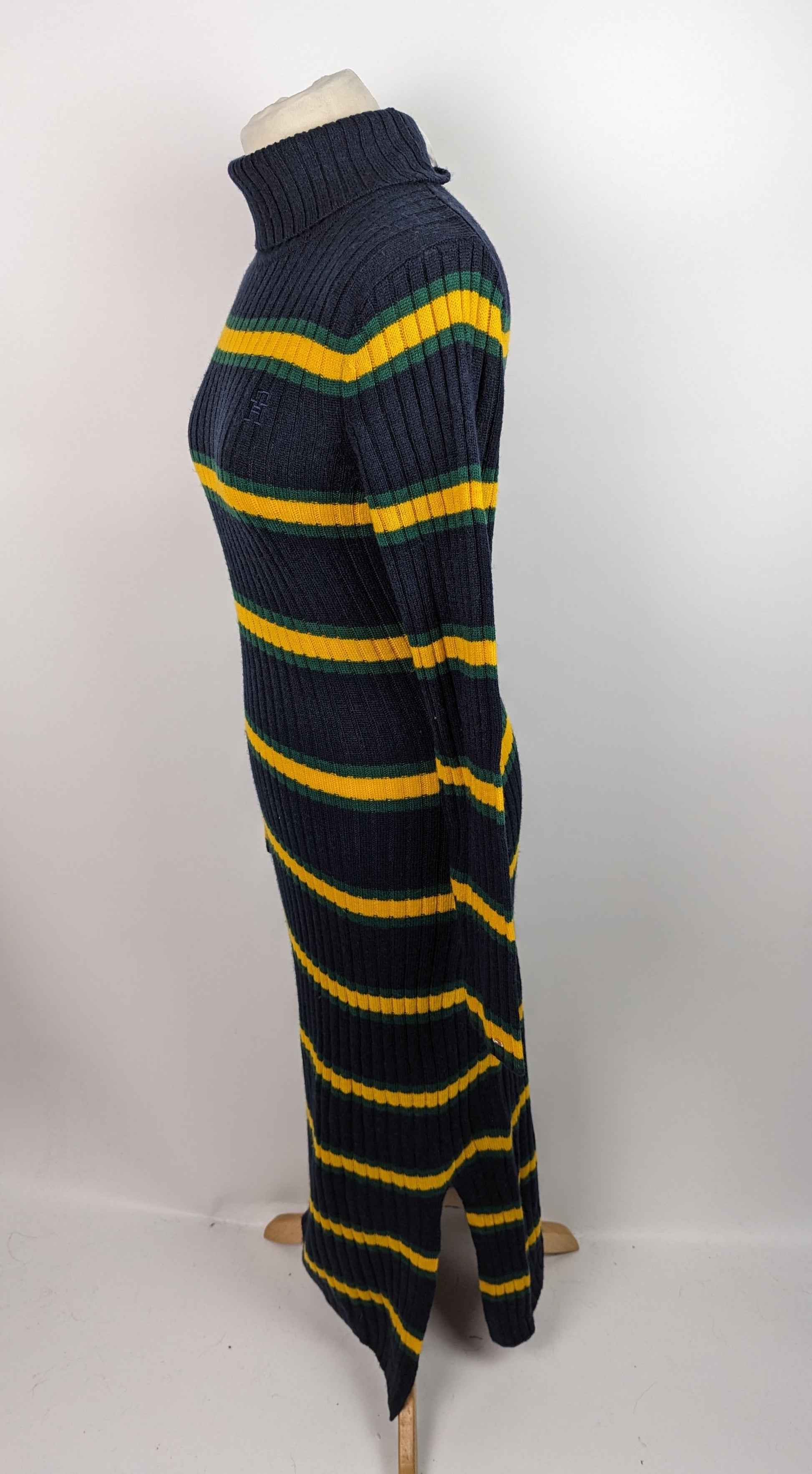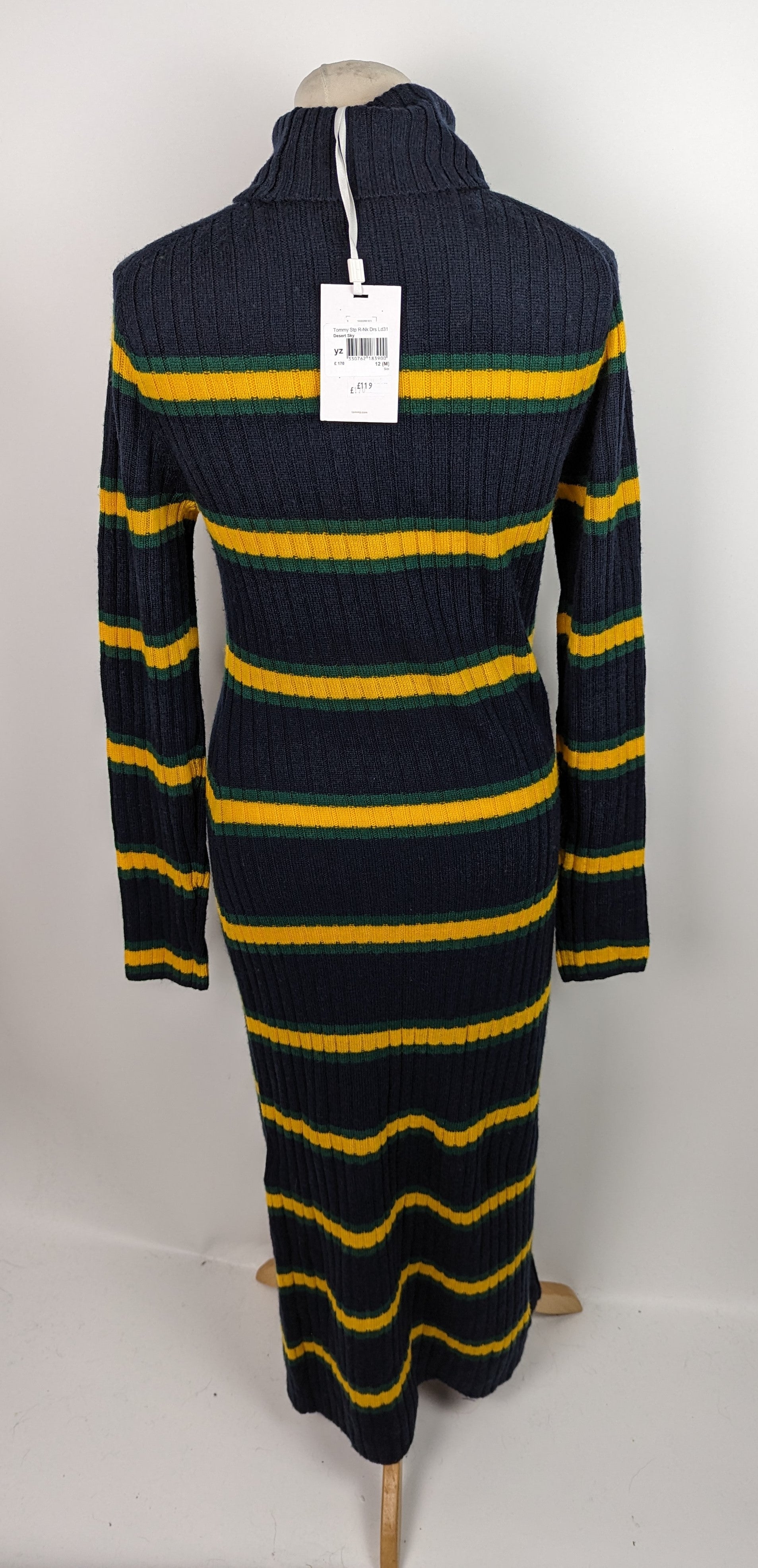 The Slim Stripe Jumper Dress from Tommy Hilfiger is the perfect addition to your casualwear wardrobe. Crafted in a soft, lightweight 100% wool, the dress is decorated in a horizontal stripe pattern in contrasting, bright shades. The slim fit, long sleeves and roll neckline create an elegant silhouette, requiring minimal accessorising to create the perfect striking outfit.