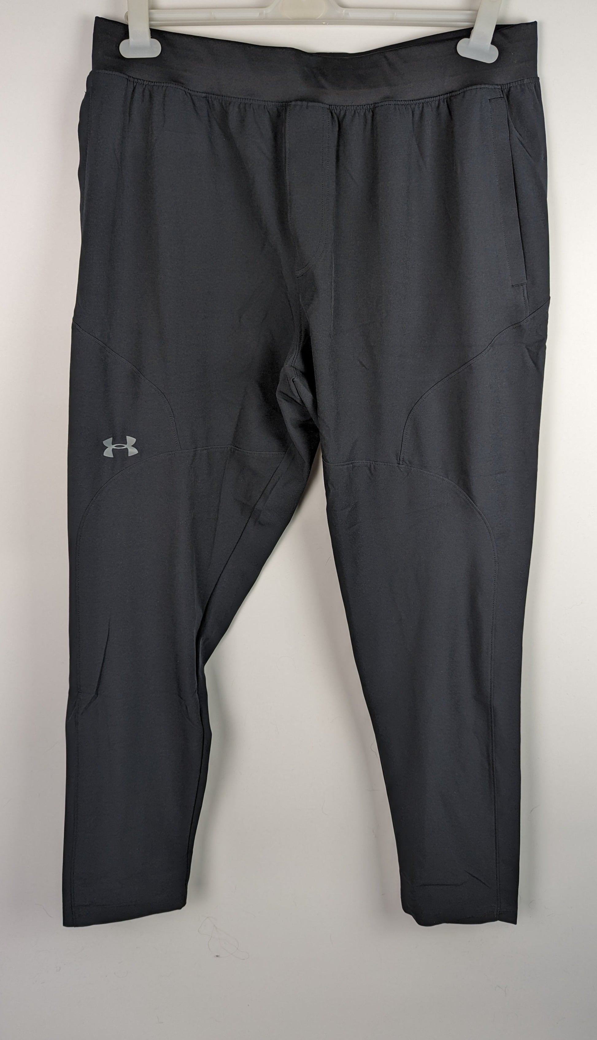 Fitted: Next-to-skin without the squeeze Tapered leg fit UA Storm technology repels water without sacrificing breathability Stretch-woven fabric is tough but lightweight 4-way stretch construction moves better in every direction Material wicks sweat & dries really fast Encased elastic waistband with internal drawcord adjust Open hand pockets & bonded, secure zip back pocket Open bottom hem Imported
