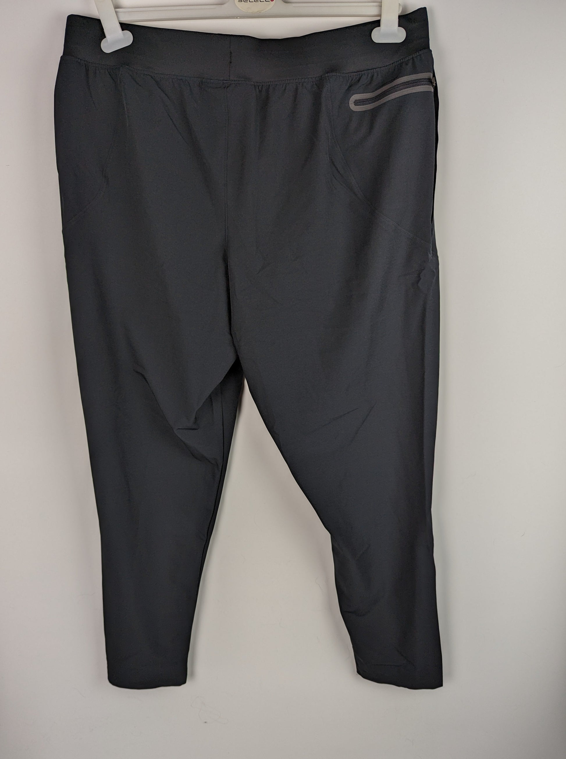 Under Armour mens Unstoppable Tapered Pants in black. If you didn't hit the gym in pants before, you will now. The difference is in the details—from the ultra-comfortable fabric to the water-repellent finish, so they dry faster—all there to help you get better.